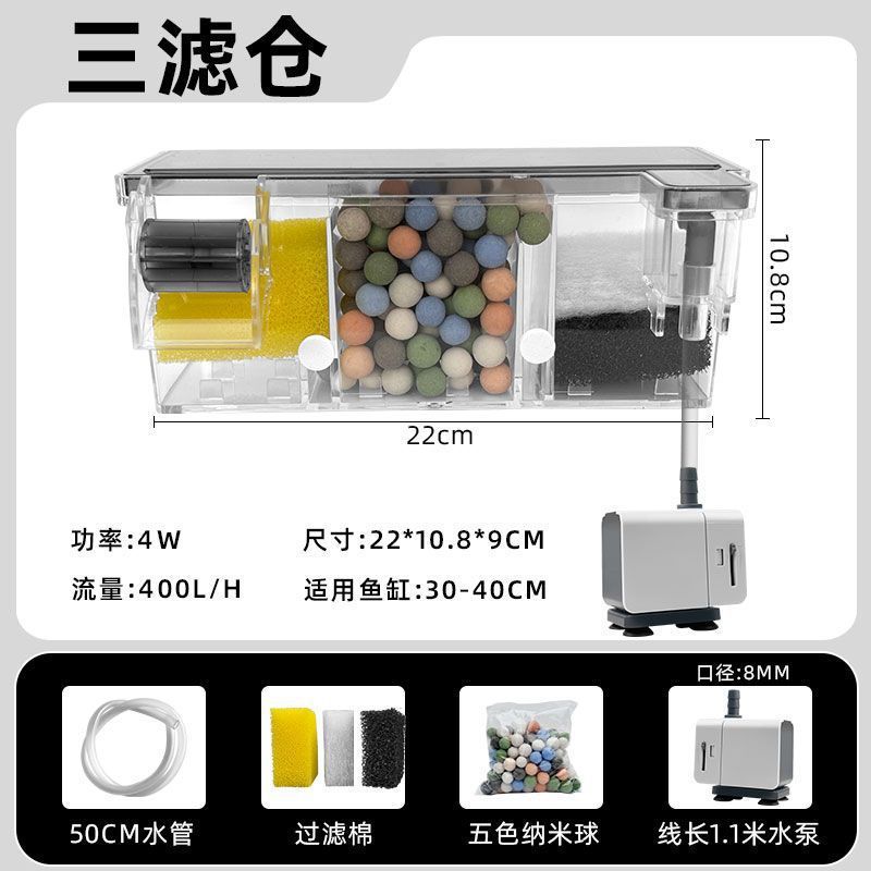 수조 필터, 소형 수조 벽걸이 필터 박스, 정수 순환, 3-in-1 드립 박스, 저수위 거북이 수조 필터