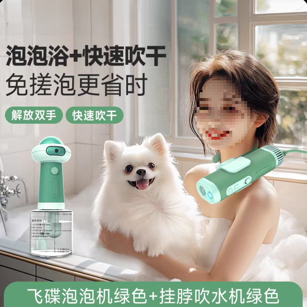 • [목욕 + 퀵드라이] 행잉넥 헤어드라이어(그린) + 업그레이드된 버블머신(그린)