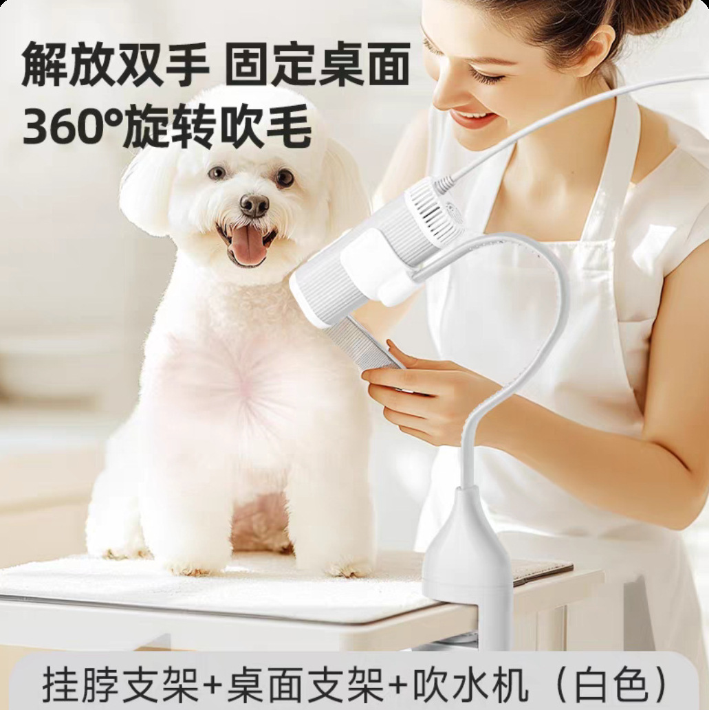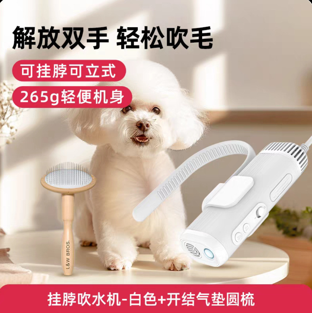 • [블로우 앤 빗 조합] 행잉 넥 블로우 드라이어 - 화이트 + 브러시드 라운드 빗