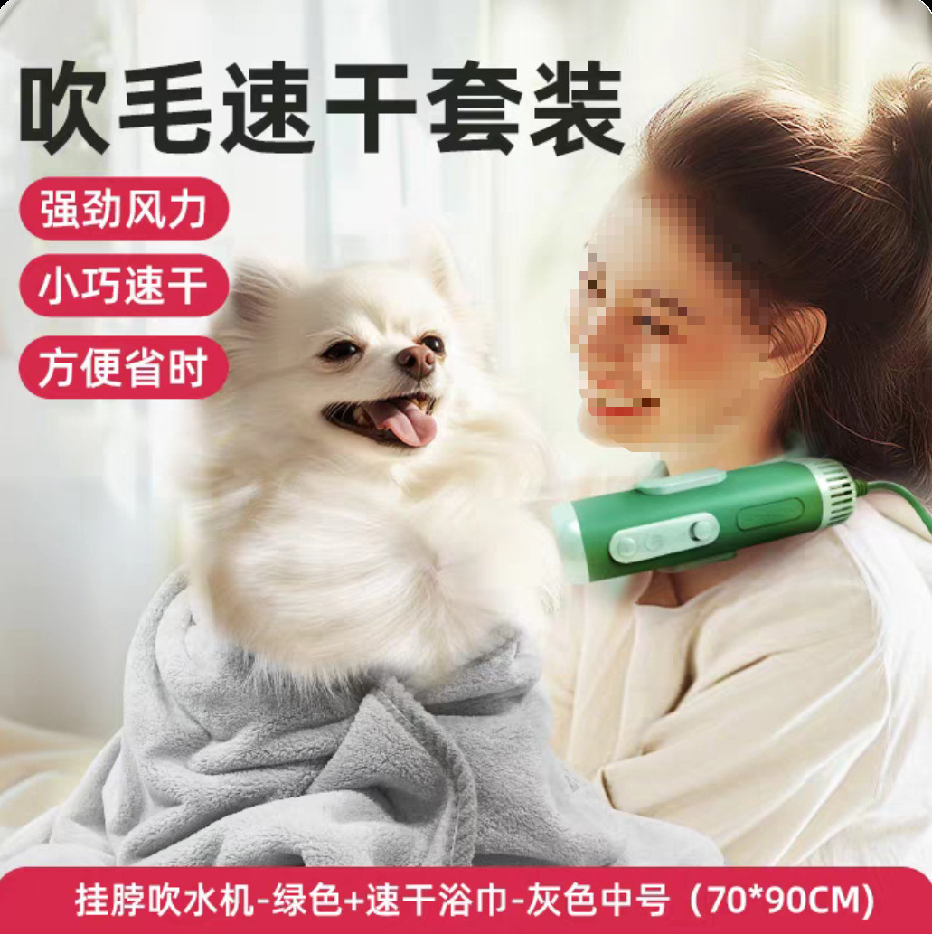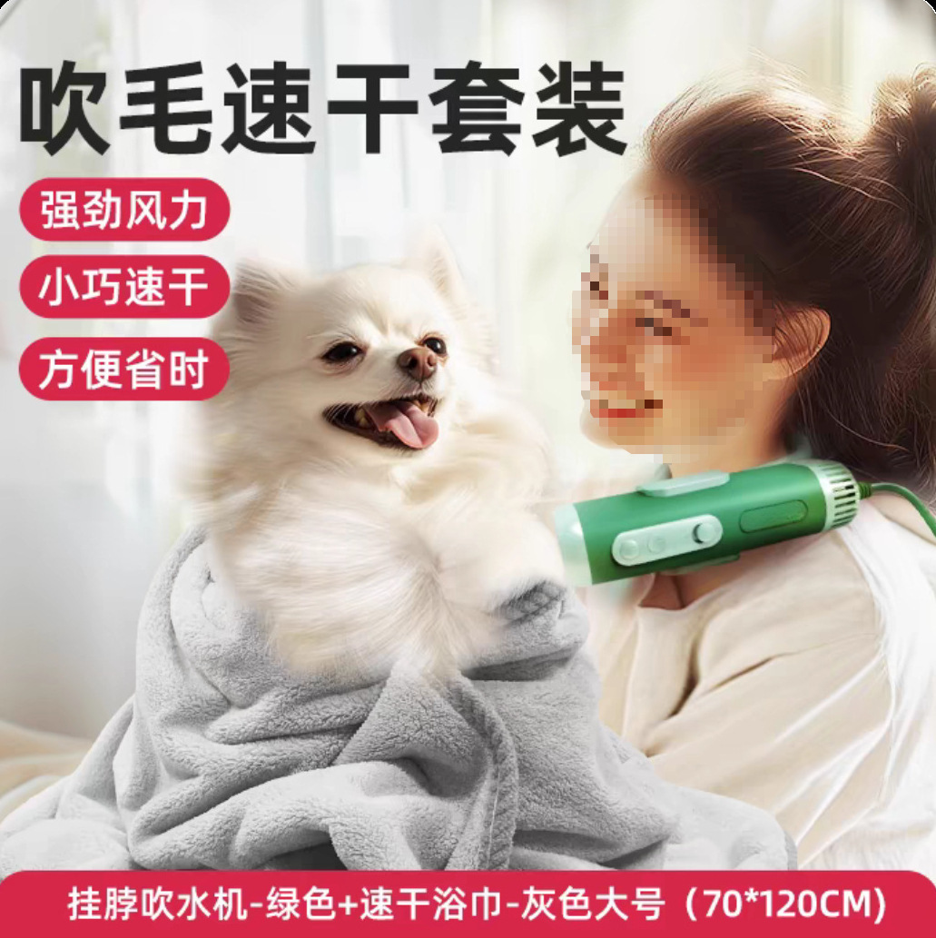 • [핸즈프리 + 속건] 행거넥 송풍기 - 그린 + 속건 목욕타월 - 그레이 미디엄
