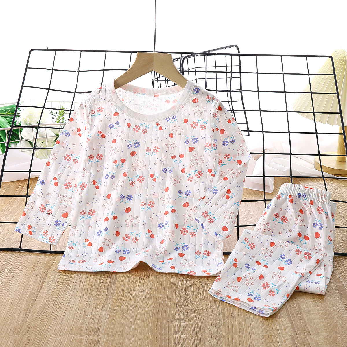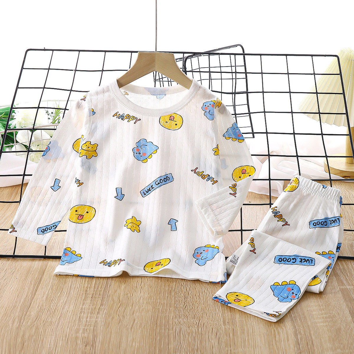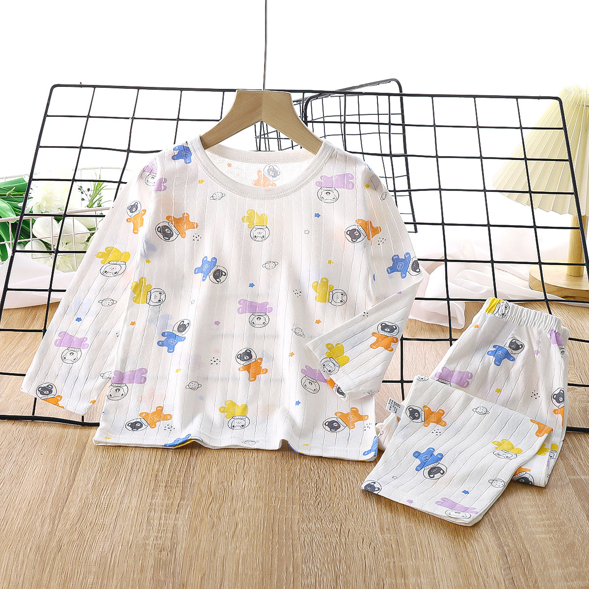 어린이 순면 가정 의류 세트 여름 긴팔 뼈없는 잠옷 아기 만화 얇은 에어컨 옷 소년과 소녀를위한스토어 가기