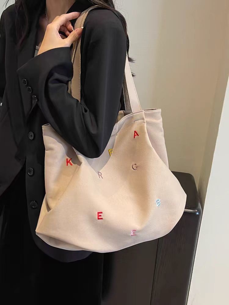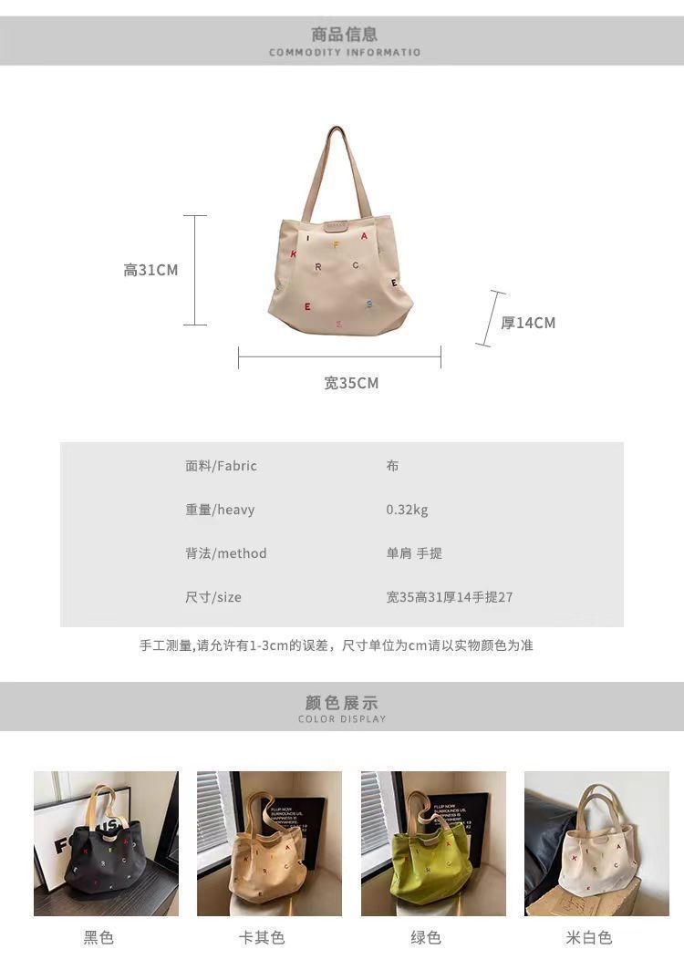 2025 새로운 캔버스 가방 대용량 여성 유행 수 놓은 편지 핸드백 작은 신선한 학생 어깨 토트 백스토어 가기