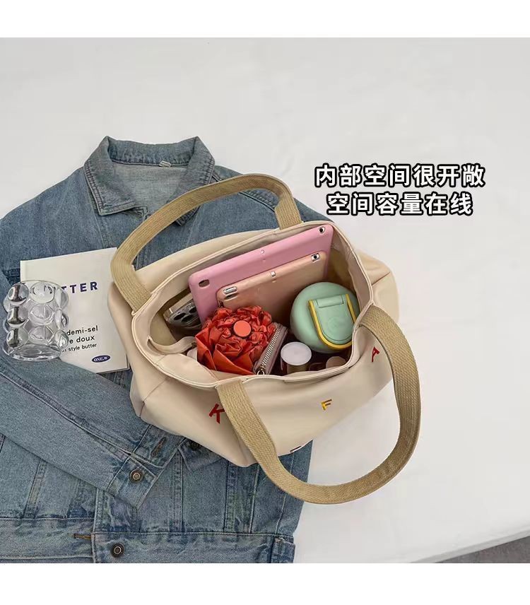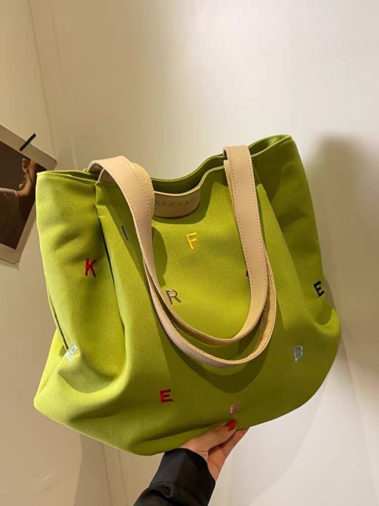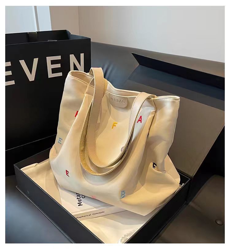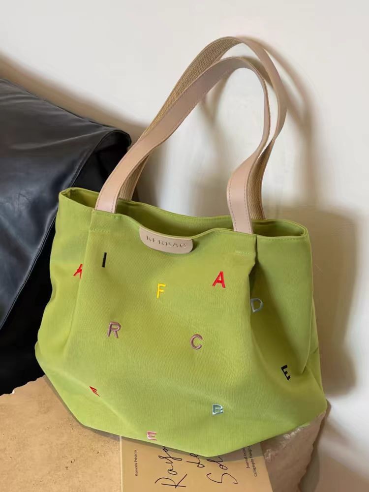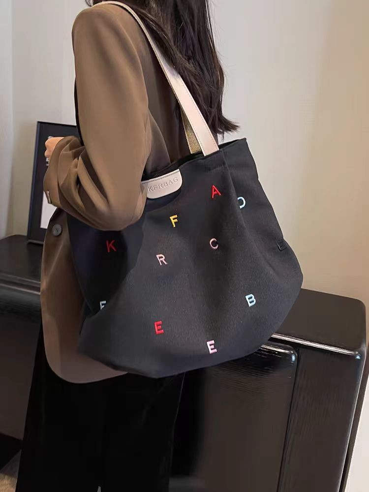 2025 새로운 캔버스 가방 대용량 여성 유행 수 놓은 편지 핸드백 작은 신선한 학생 어깨 토트 백