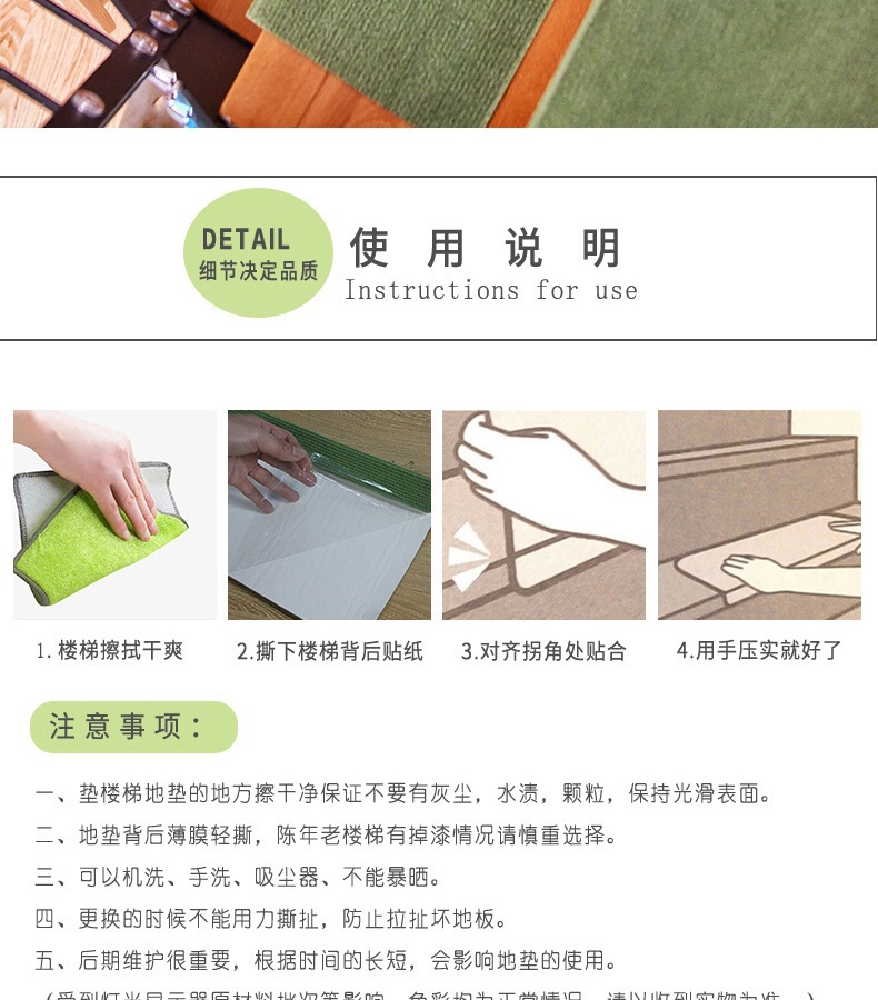 계단 단계 매트, 미끄럼 방지 가정용 바닥 매트, 접착제가 필요 없는 자체 접착 카펫 발 매트, 회전식 단단한 나무 단계 스티커, 발광 바닥스토어 가기