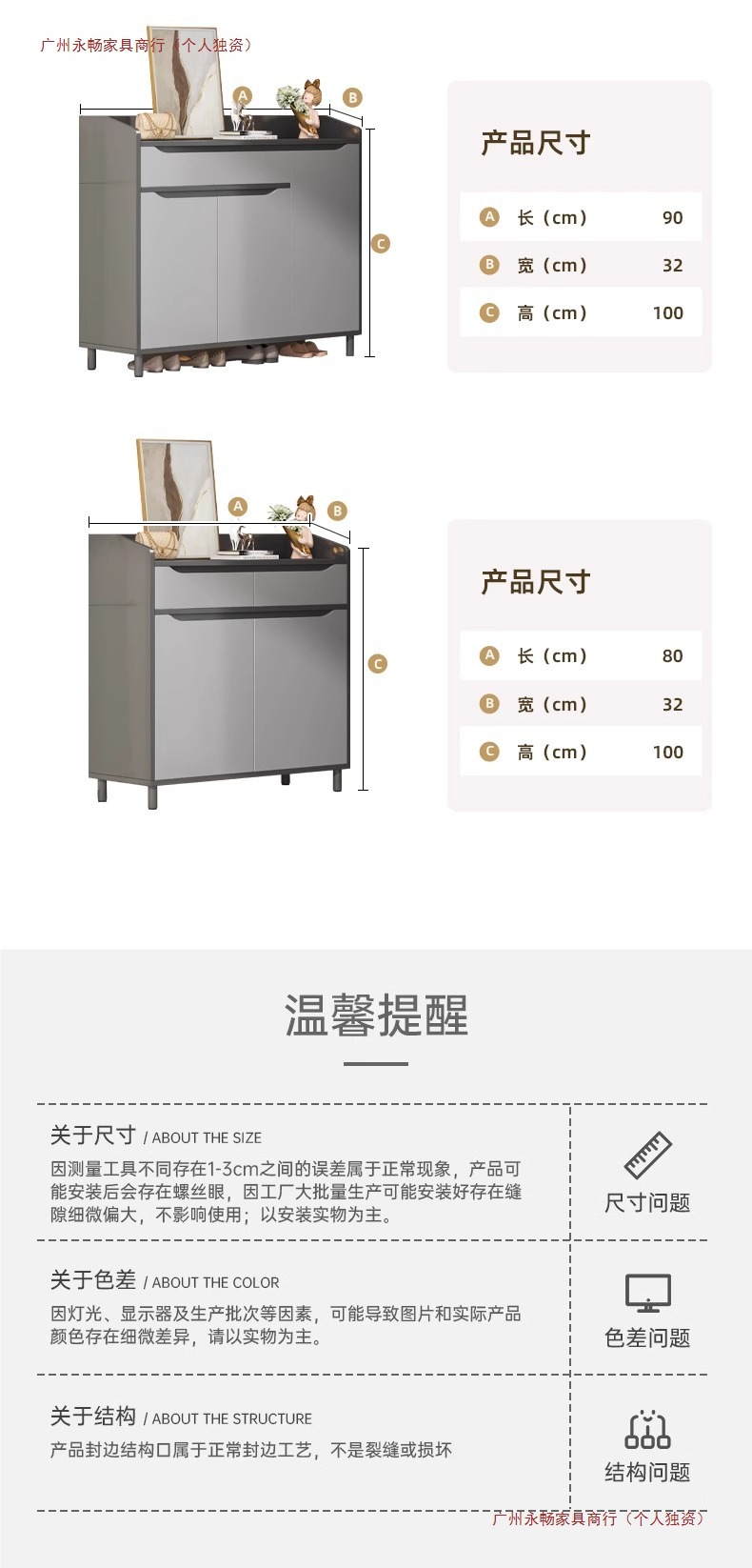 • [고급 난양 잉무 3도어 1도어] 스카이 그레이 90*32*100cm