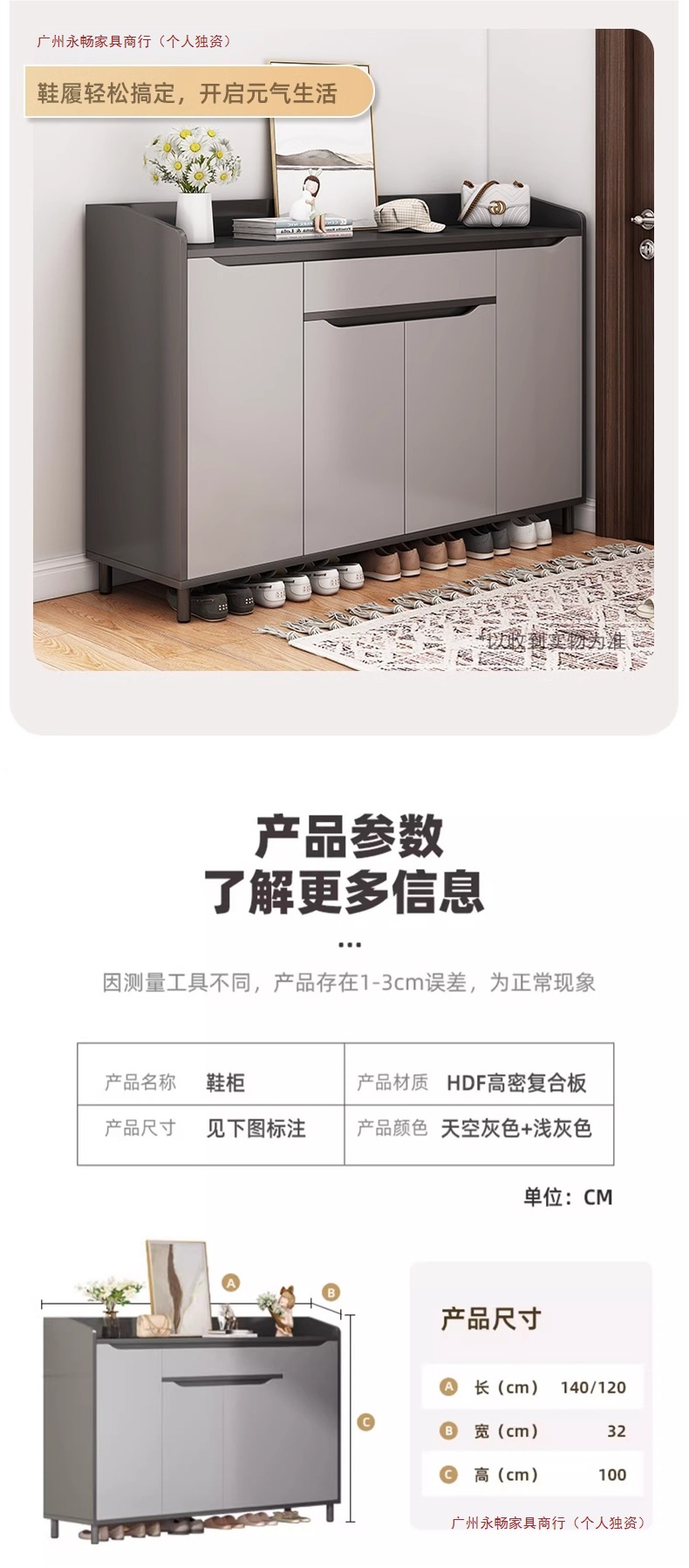 • [고밀도 복합보드 다층 증점] 스카이그레이 120*32*100cm