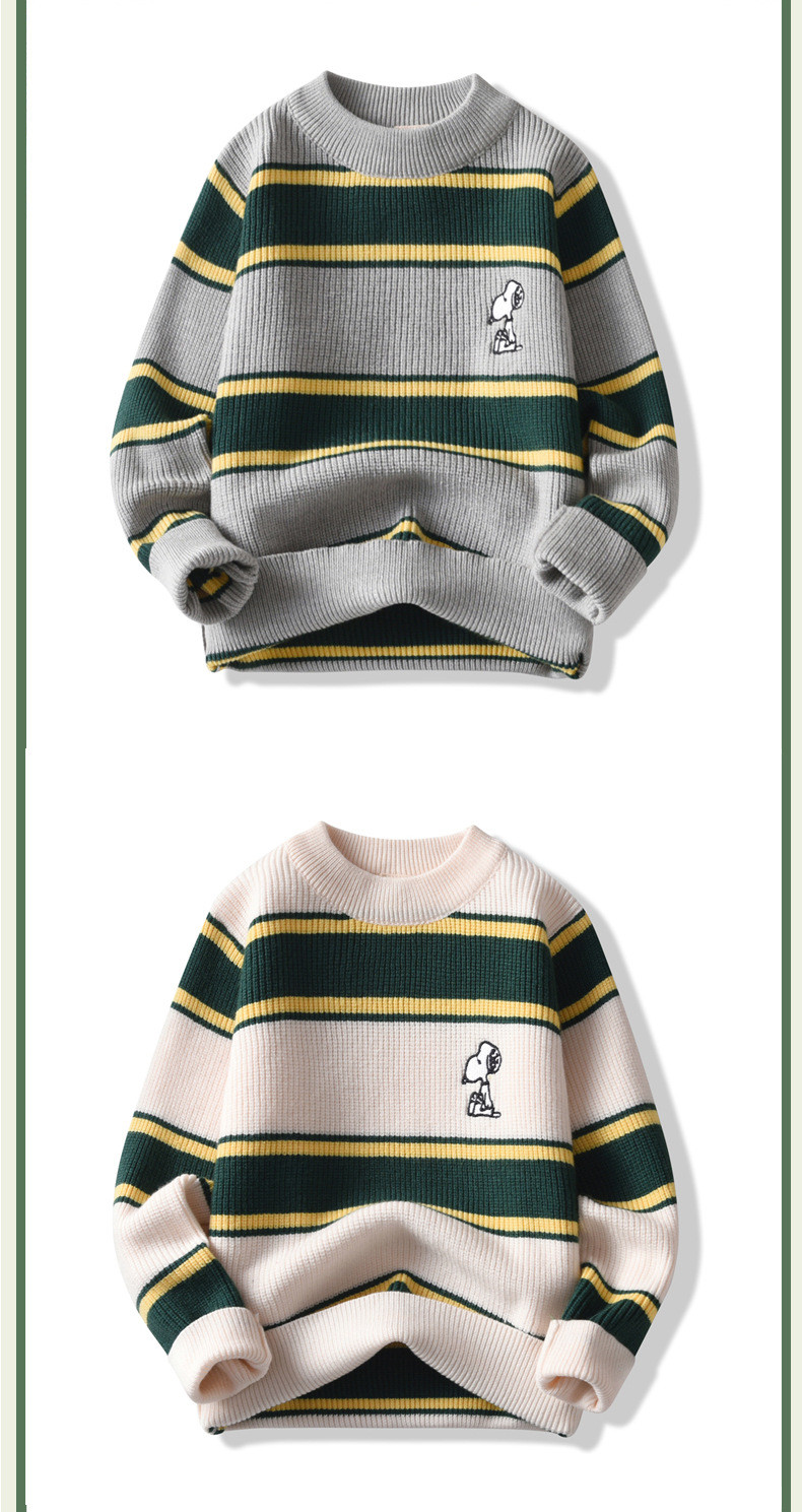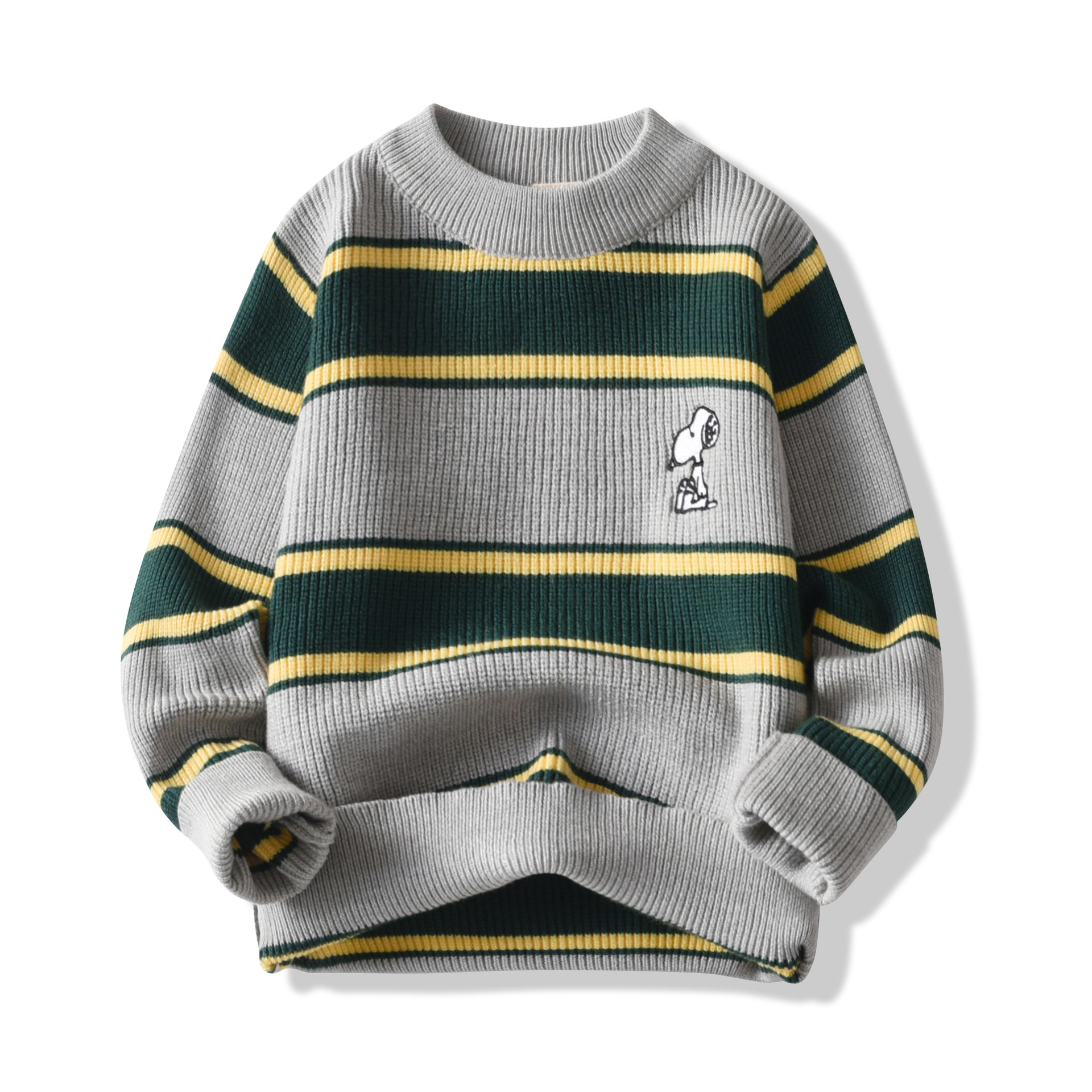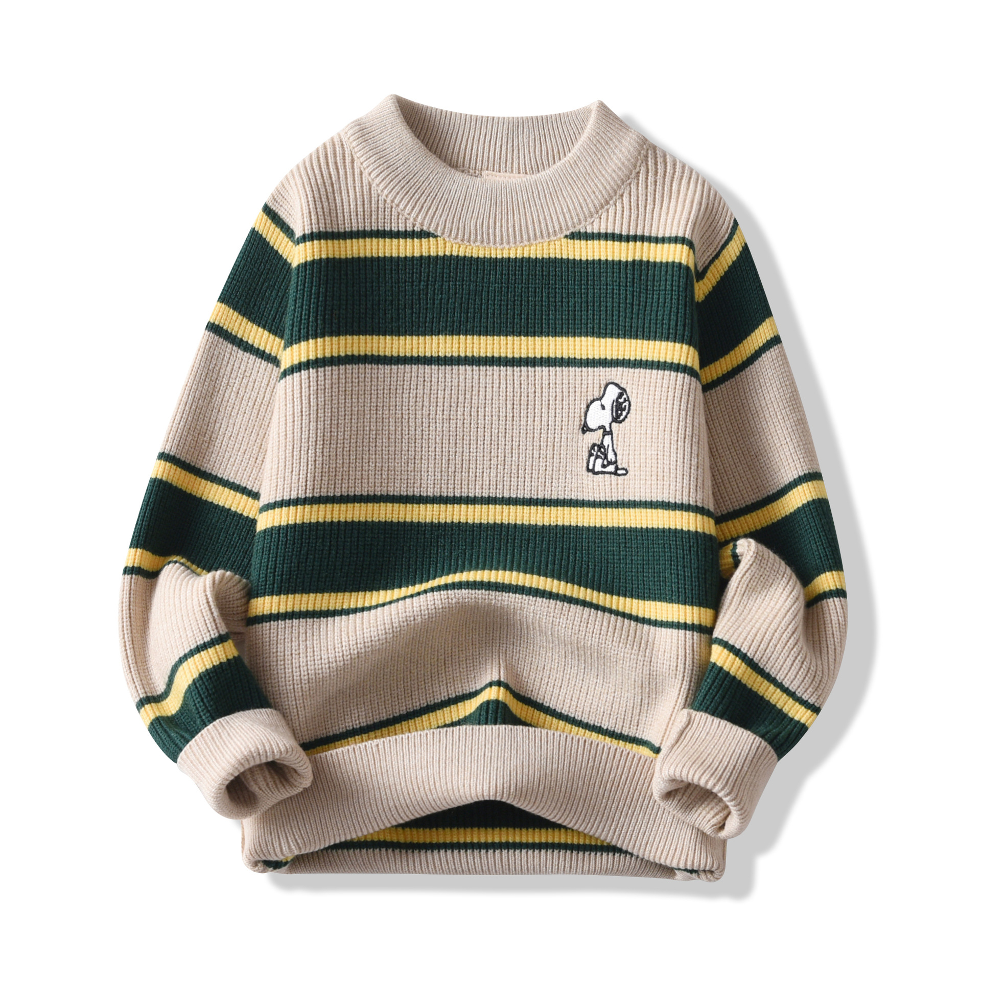 Dalong 공장 직접 판매 어린이 줄무늬 수 놓은 만화 스웨터 유행 서양식 스웨터 아동 의류 대학 스타일 스웨터
