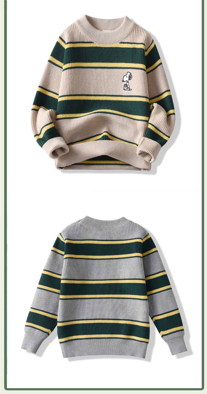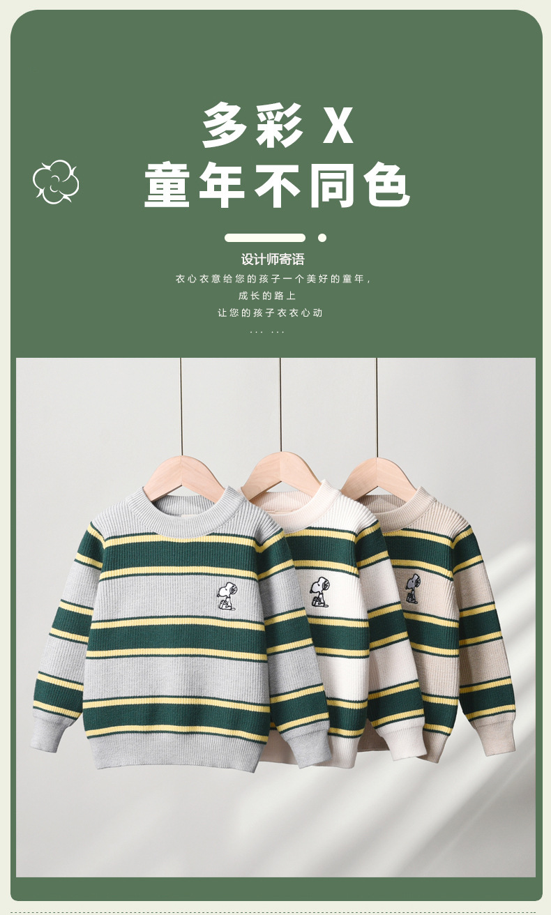 Dalong 공장 직접 판매 어린이 줄무늬 수 놓은 만화 스웨터 유행 서양식 스웨터 아동 의류 대학 스타일 스웨터스토어 가기