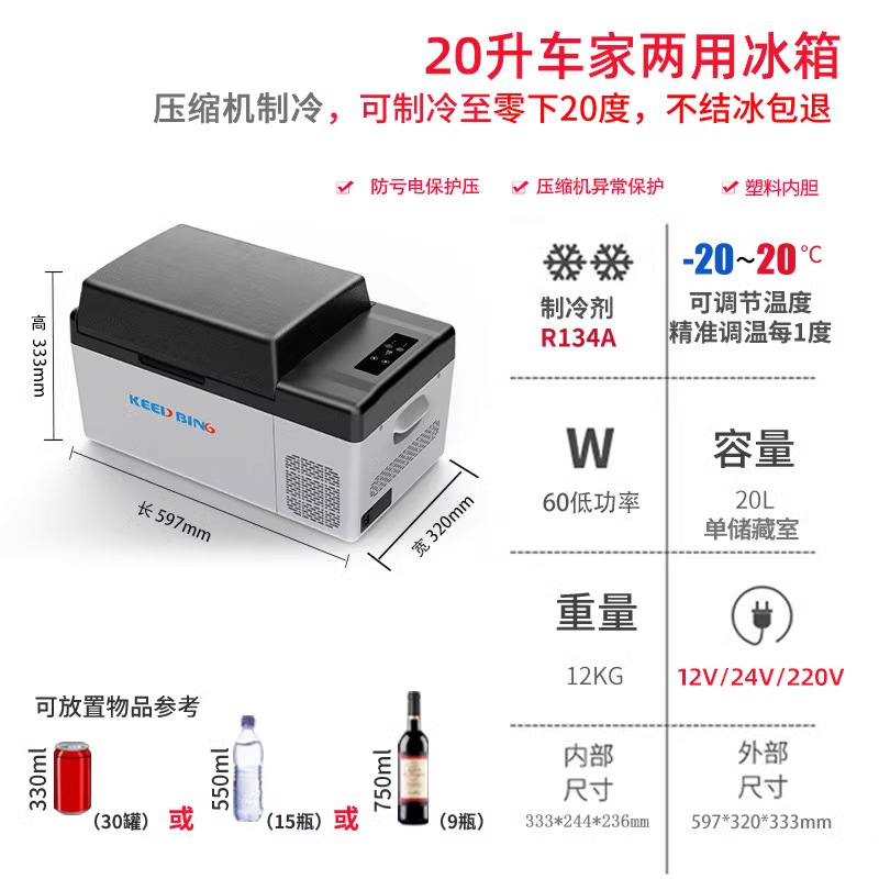 차량용 냉장고 압축기 냉각 15리터 20리터 차량 및 가정 겸용 12V24V 냉동 냉장 소형 전용 냉동고