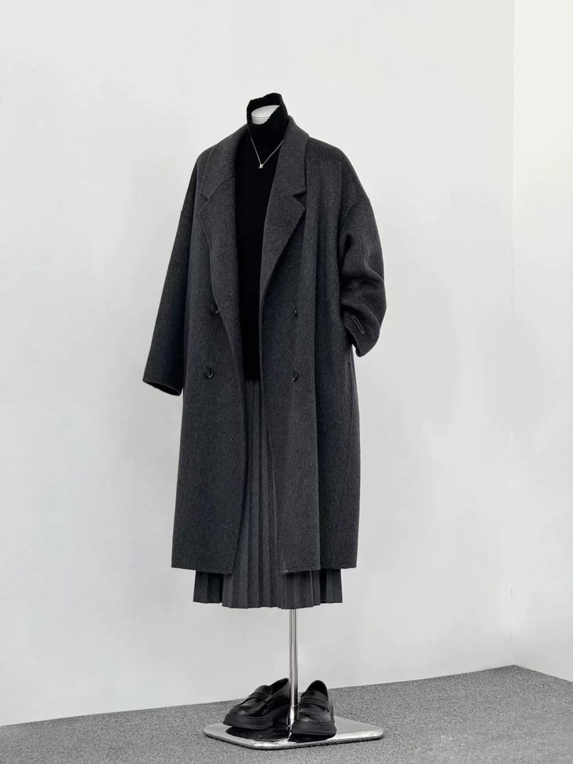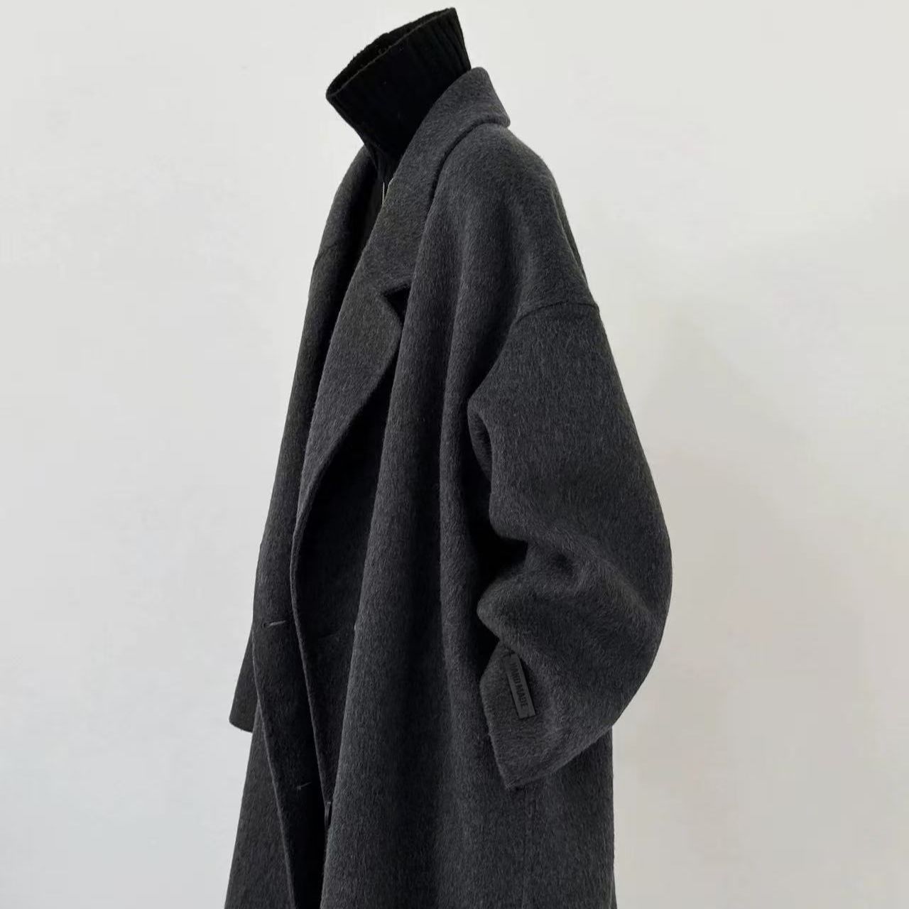 2025 새로운 가을, 겨울 양면 모직 코트 여성 긴 캐시미어 한국 스타일 느슨한 모직 코트 슬리밍 여성스토어 가기
