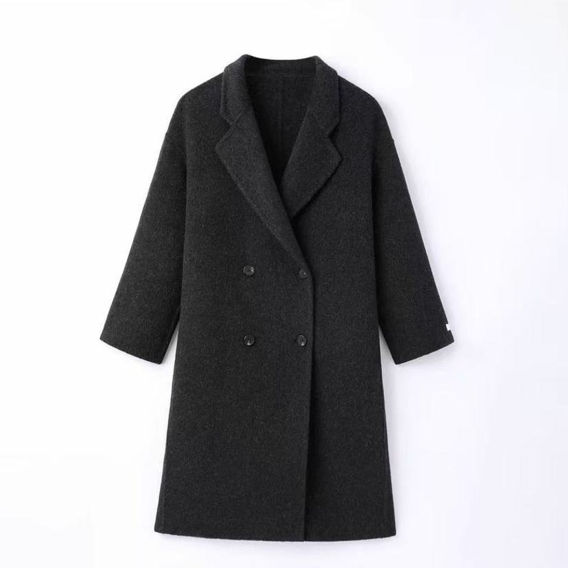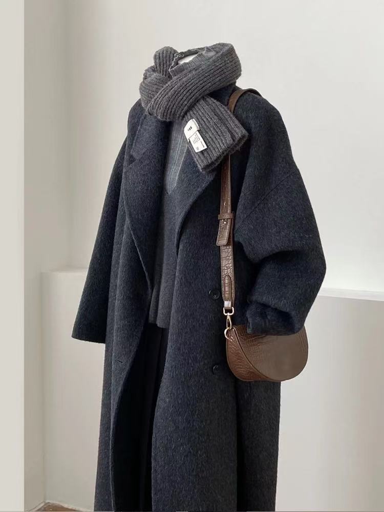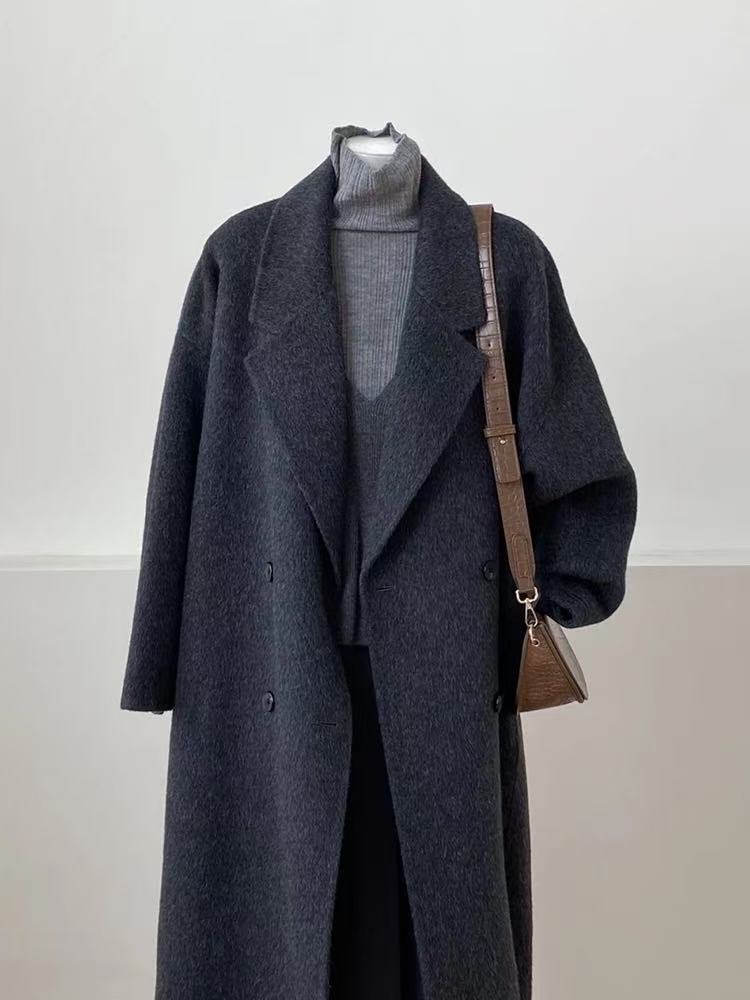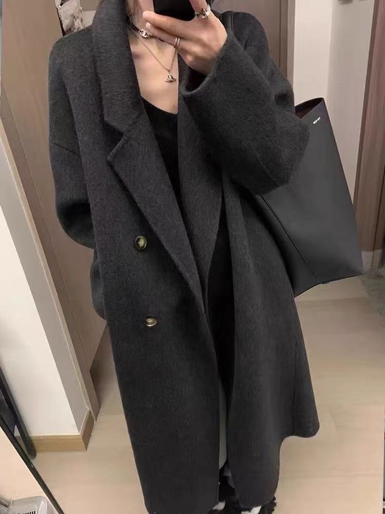 2025 새로운 가을, 겨울 양면 모직 코트 여성 긴 캐시미어 한국 스타일 느슨한 모직 코트 슬리밍 여성