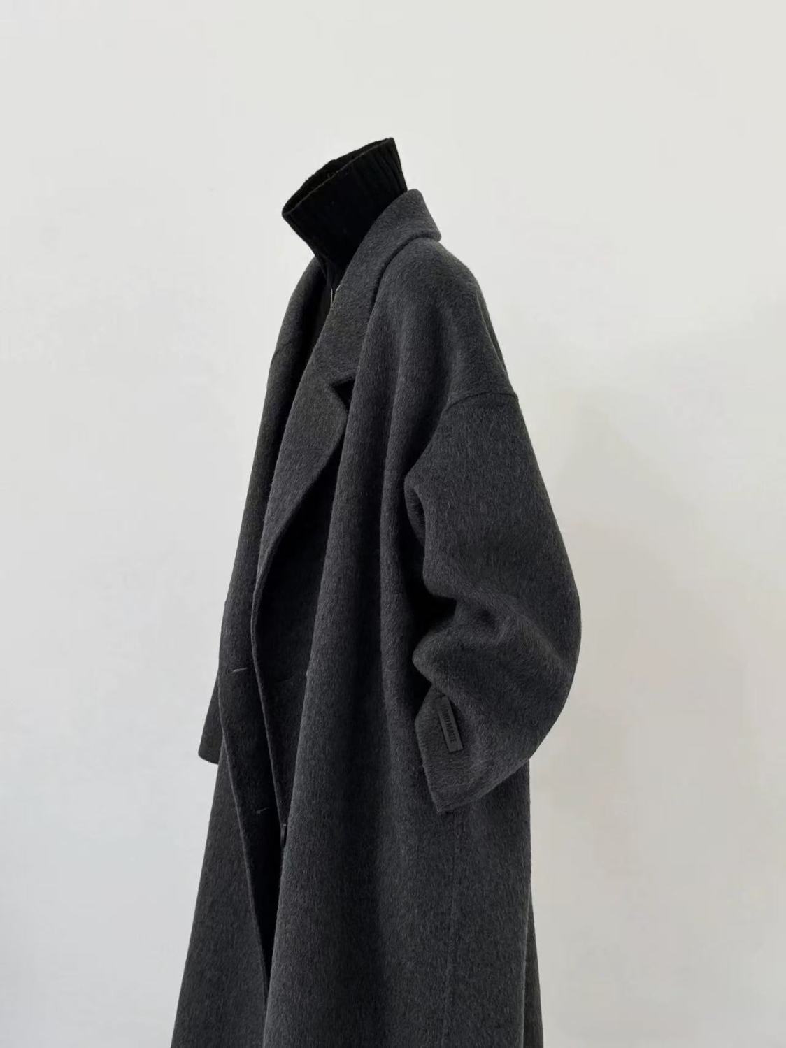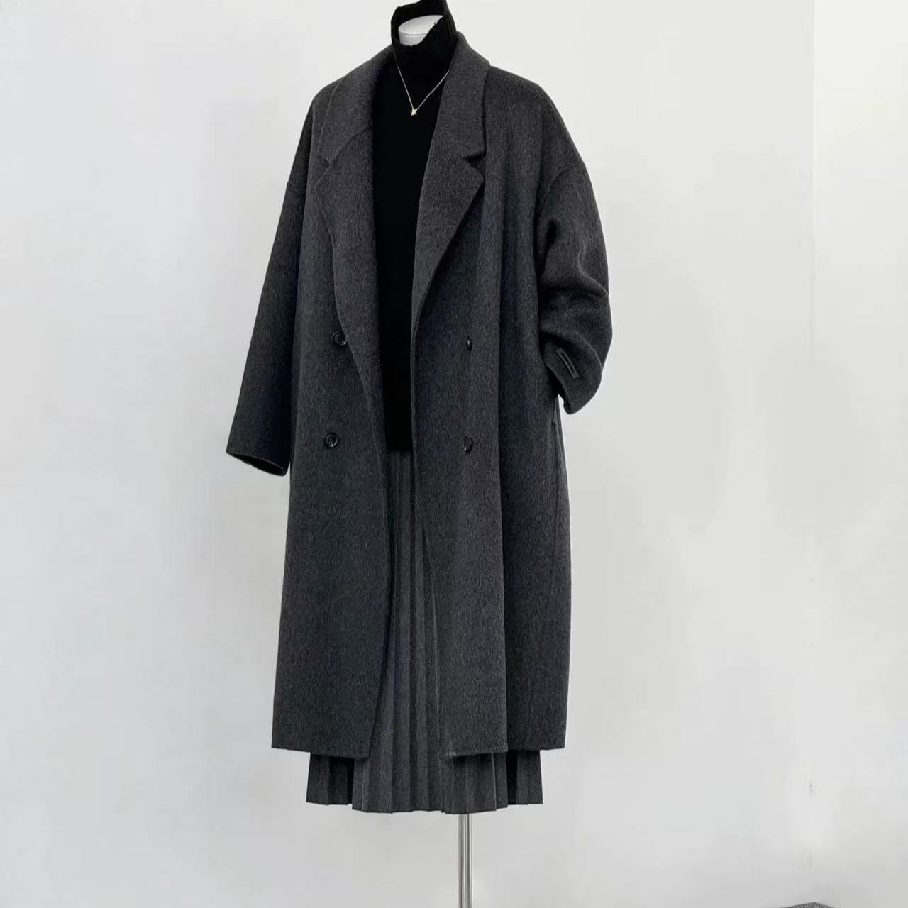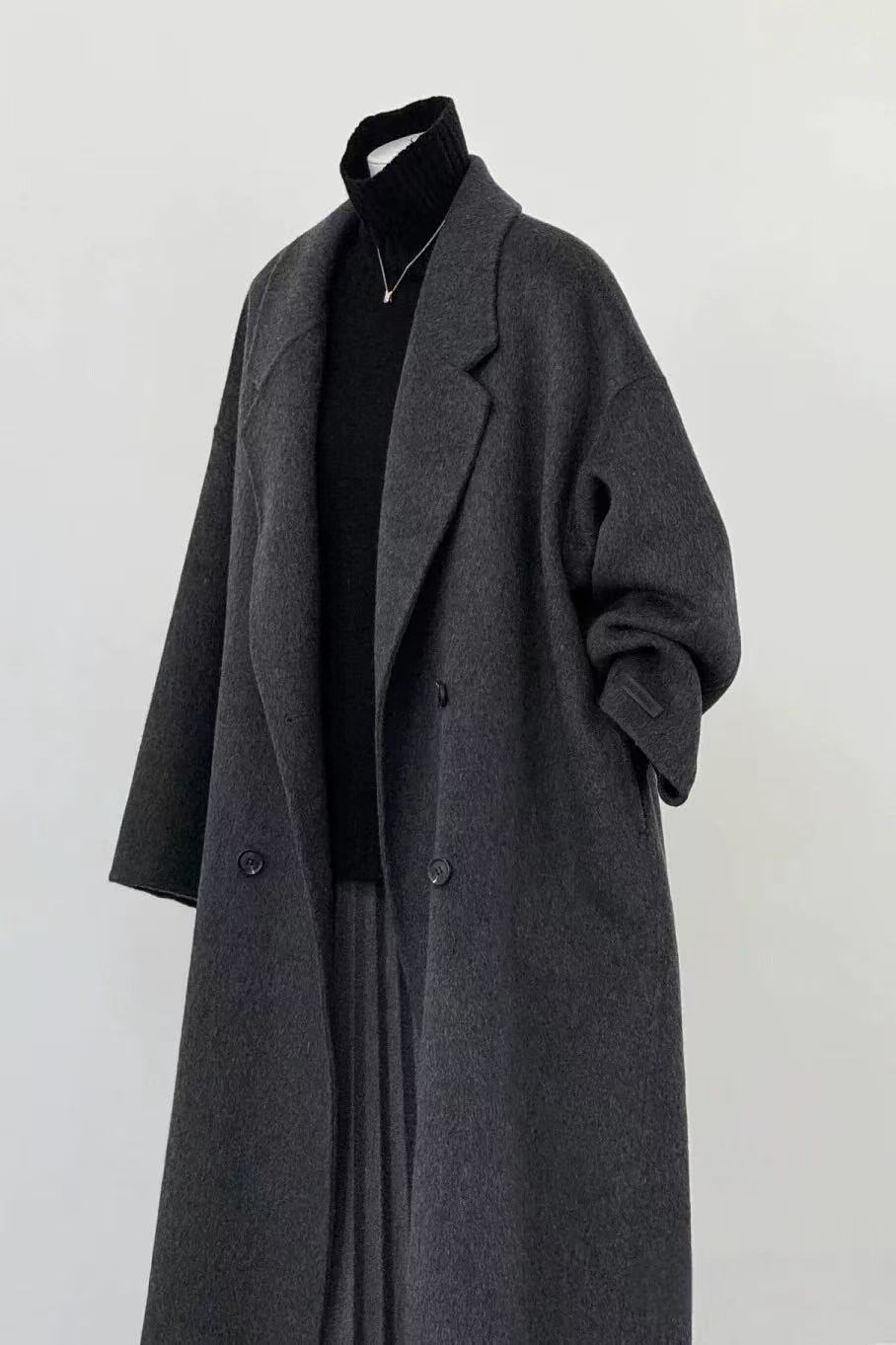 2025 새로운 가을, 겨울 양면 모직 코트 여성 긴 캐시미어 한국 스타일 느슨한 모직 코트 슬리밍 여성
