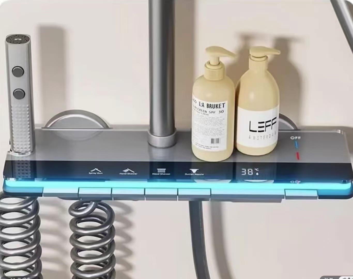 전체 구리 스마트 샤워 분위기 라이트 샤워 샤워 세트 홈 디지털 디스플레이 욕실 레인 부스터 건 그레이