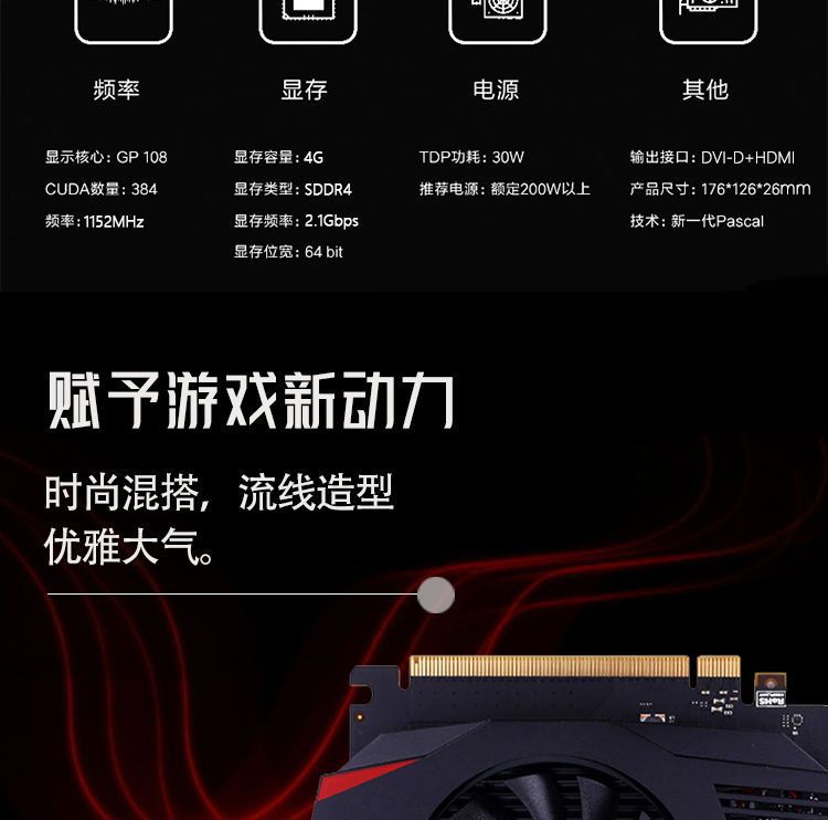 GT1030 4G 독립 그래픽 카드 1050ti 그래픽 카드 사무실 게임용 전원 공급 장치 필요 없음 그래픽 카드 LOL스토어 가기