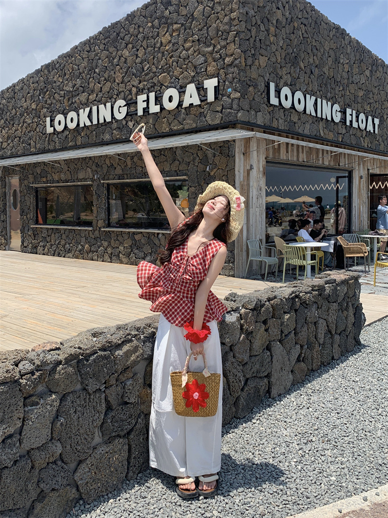 핫걸 스타일 V 넥 조끼 여성 2025 여름 신작 슬림핏 주름 아우터웨어 외국 스타일 서스펜더 탑스토어 가기