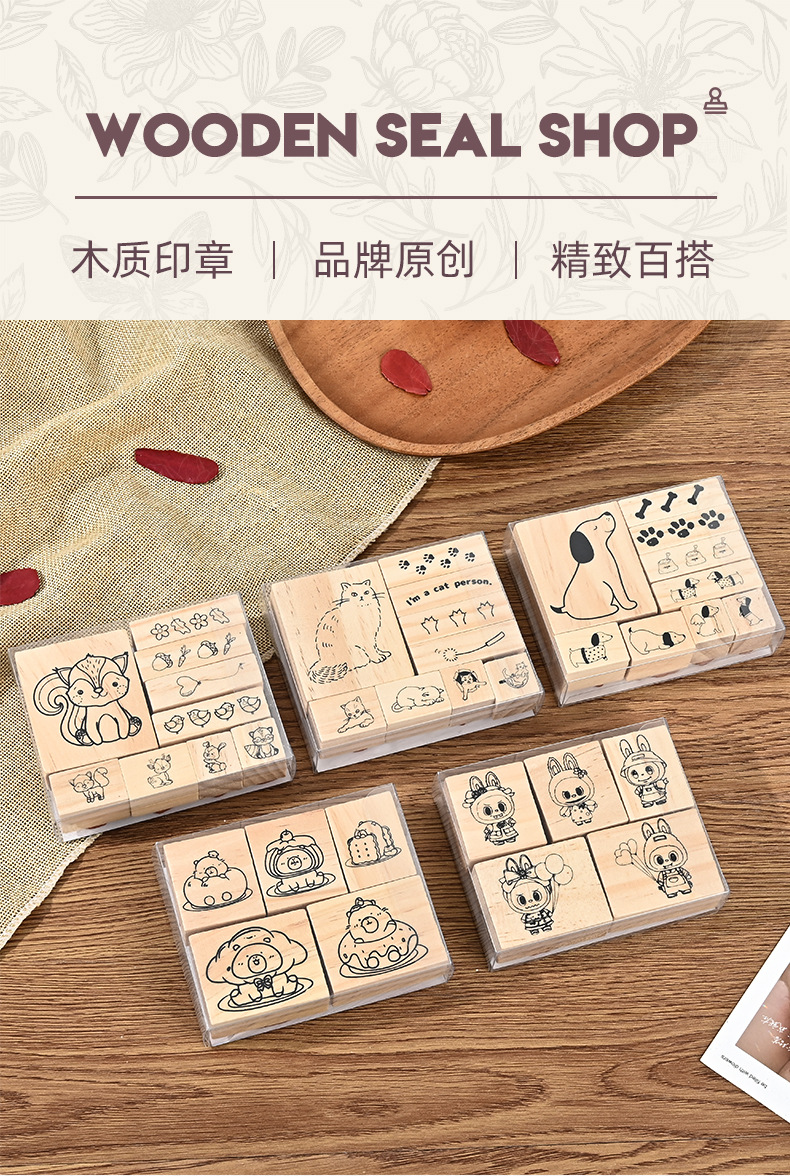 문화 및 관광 나무 기념품 만화 상자 귀여운 동물 일기 장식 국경 간 너도밤 나무 인감 마을스토어 가기
