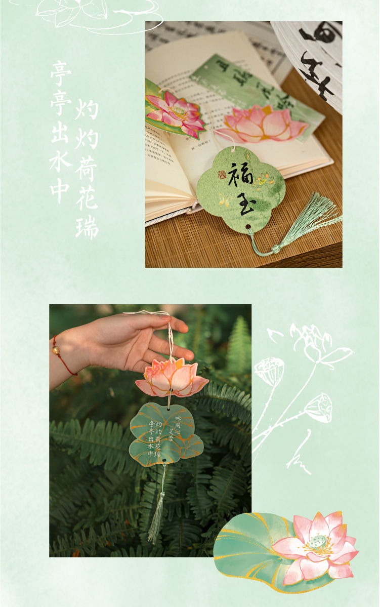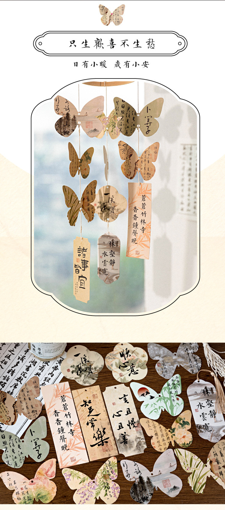 Mo Mo Qingfeng Xiangsong 시리즈 펜던트, 중국 스타일 책갈피, 문학적 나비 꽃 만화, 귀여운 애완 동물 생활 펜던트스토어 가기
