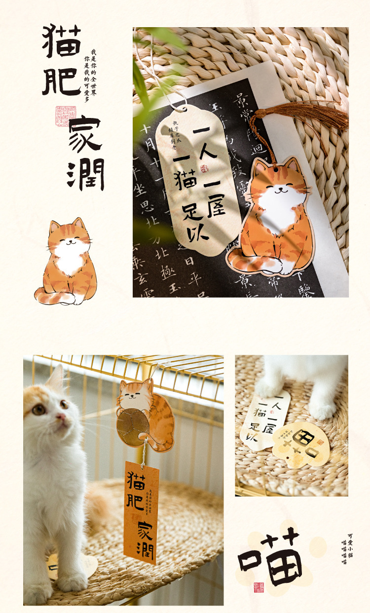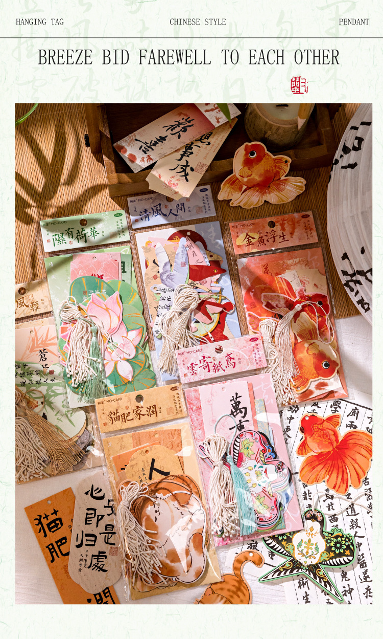 Mo Mo Qingfeng Xiangsong 시리즈 펜던트, 중국 스타일 책갈피, 문학적 나비 꽃 만화, 귀여운 애완 동물 생활 펜던트