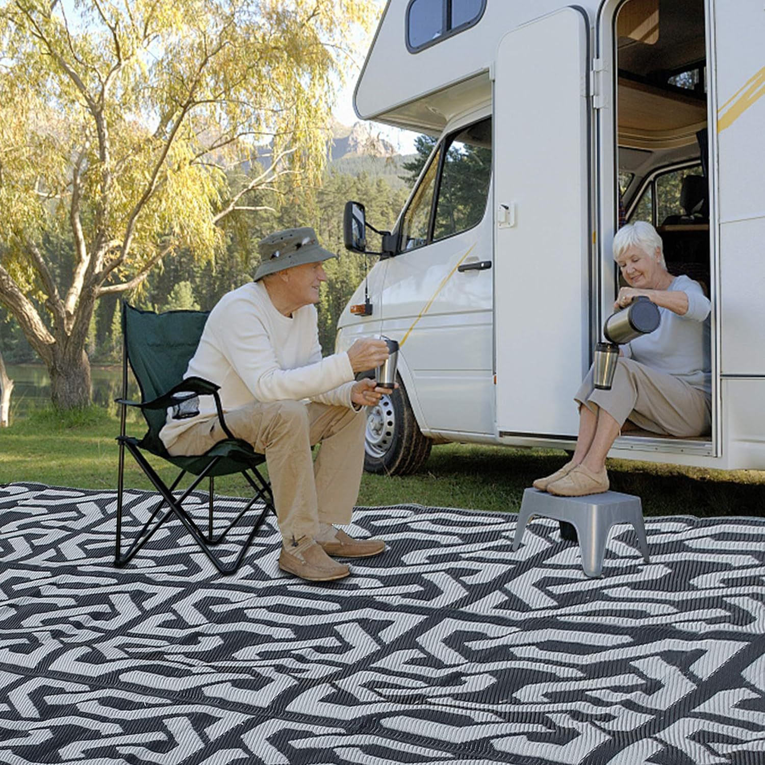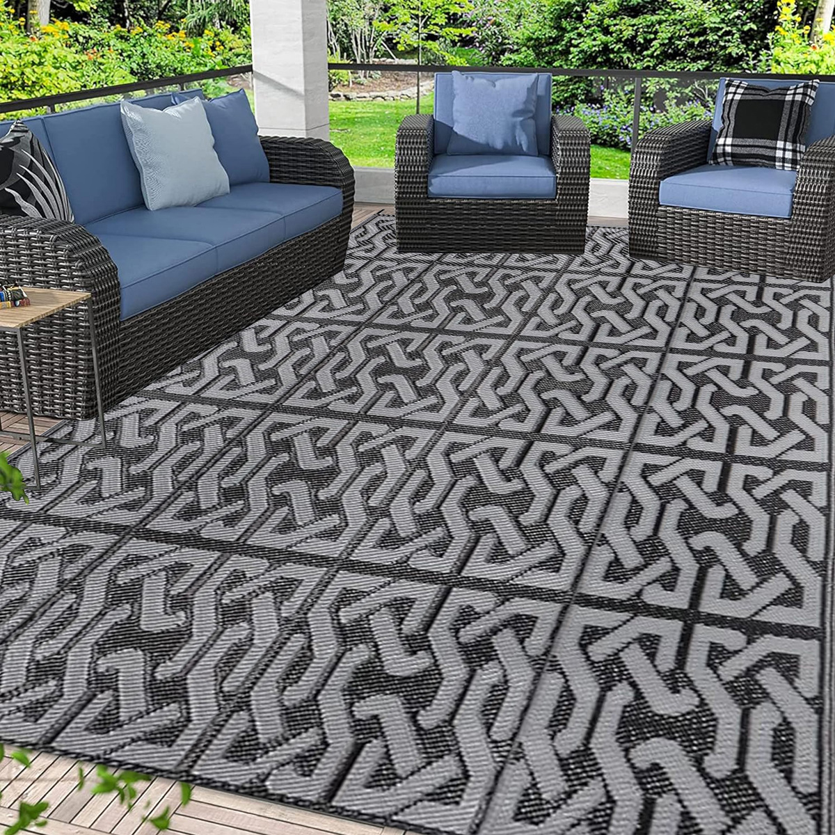 야외 피크닉 매트 접이식 PP 플라스틱 해변 좌석 접이식 짠 매트 캠핑 바베큐 두꺼운 방습 바닥 매트 크로스보더스토어 가기