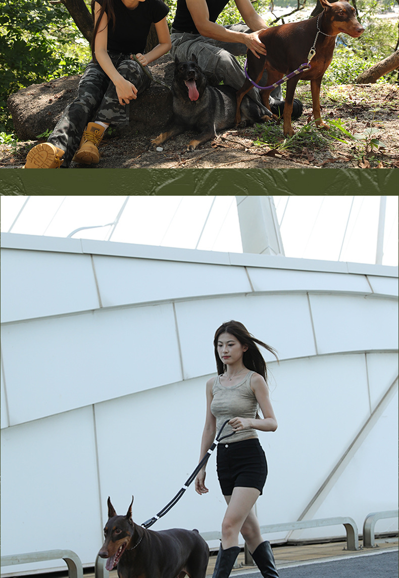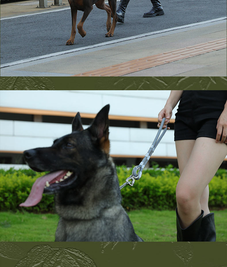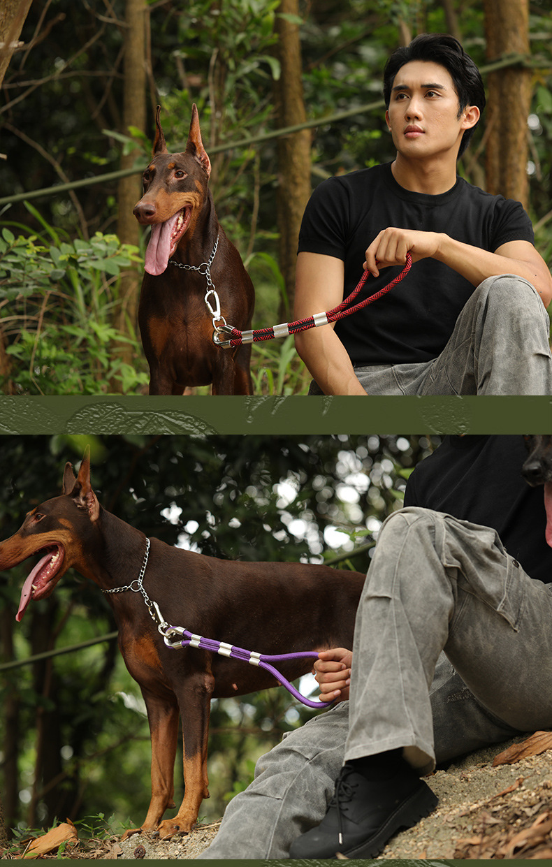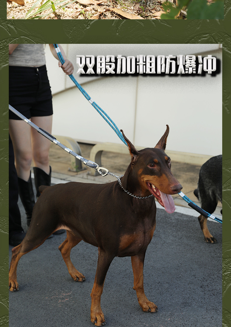 대형 애완견을 위한 국경 간 전술 견인 로프, 두꺼운 나일론 로프, 이중 개 로프, 금속 버클, 대형견 충돌 방지스토어 가기