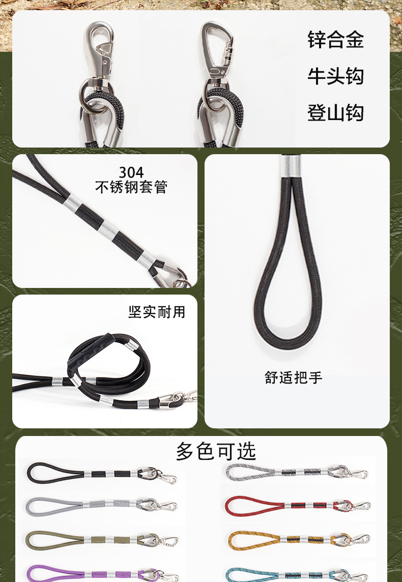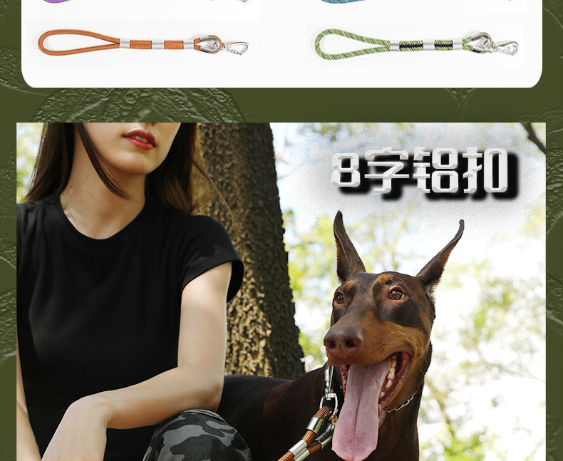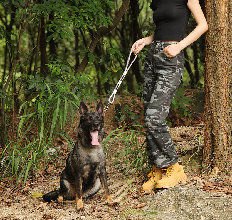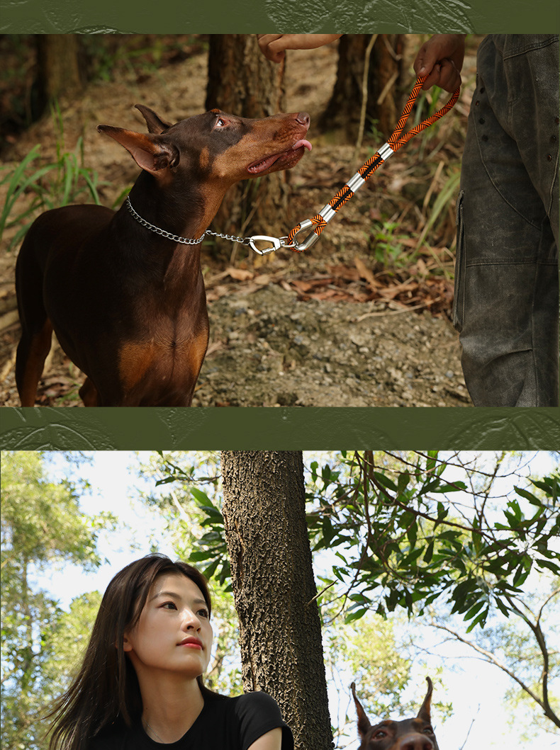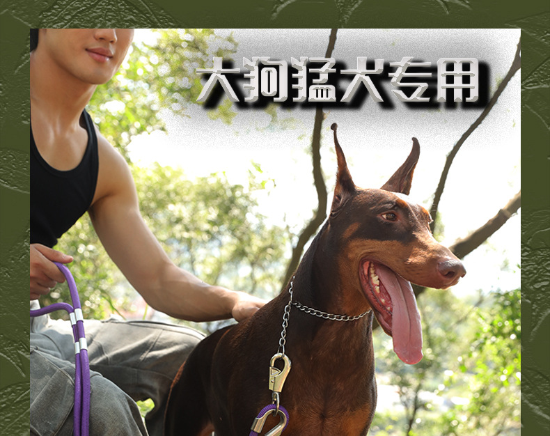 대형 애완견을 위한 국경 간 전술 견인 로프, 두꺼운 나일론 로프, 이중 개 로프, 금속 버클, 대형견 충돌 방지스토어 가기