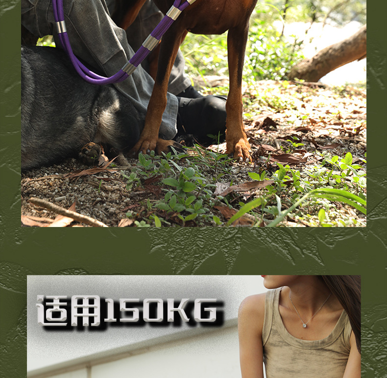 대형 애완견을 위한 국경 간 전술 견인 로프, 두꺼운 나일론 로프, 이중 개 로프, 금속 버클, 대형견 충돌 방지