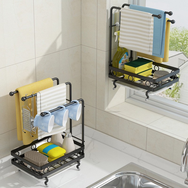 주방 걸레 걸이 벽걸이 싱크대 배수 바구니 펀치 없는 데스크탑 수납 선반 수건 스펀지 설거지용 천 수납 선반