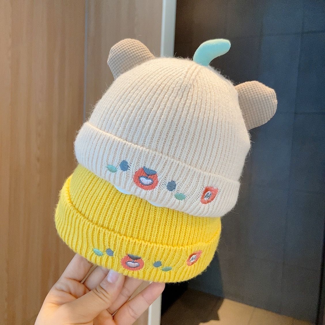 아기 모자, 귀여운 신생아 태아 모자, 가을 겨울 모직 니트 두껍고 따뜻한 남성과 여성 유아 보호스토어 가기