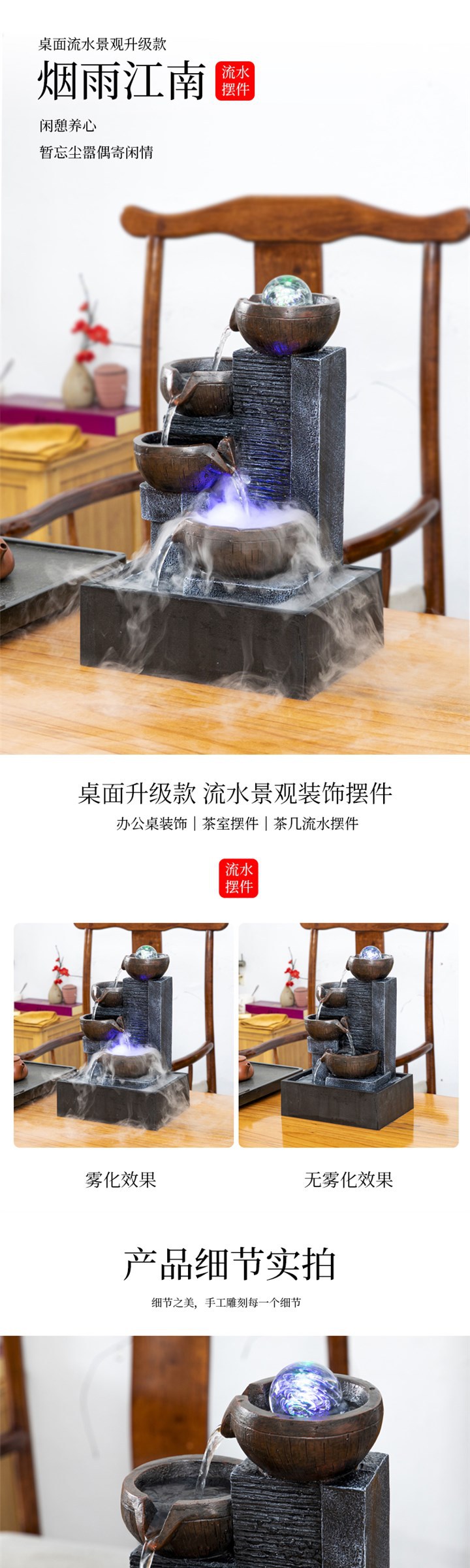 현대적인 흐르는 물 장식품, 순환하는 물, 작은 분수, 피닉스 물 공, O 사무실, 부를 불러일으키는 팔방 풍수