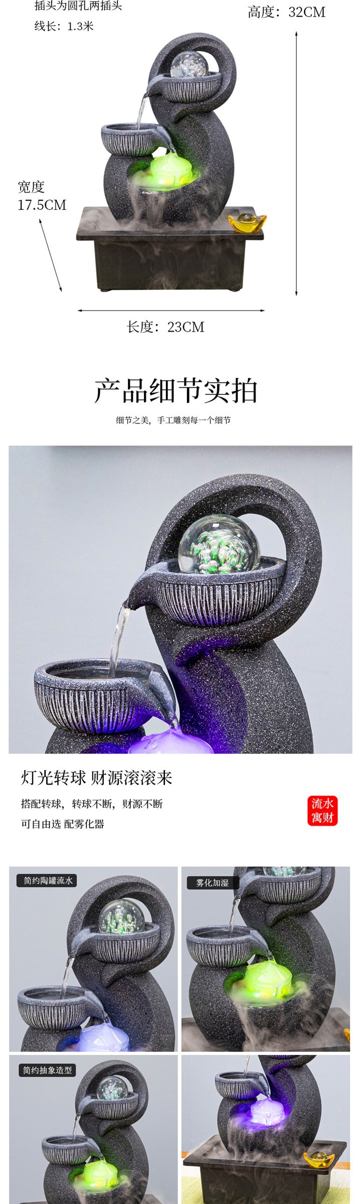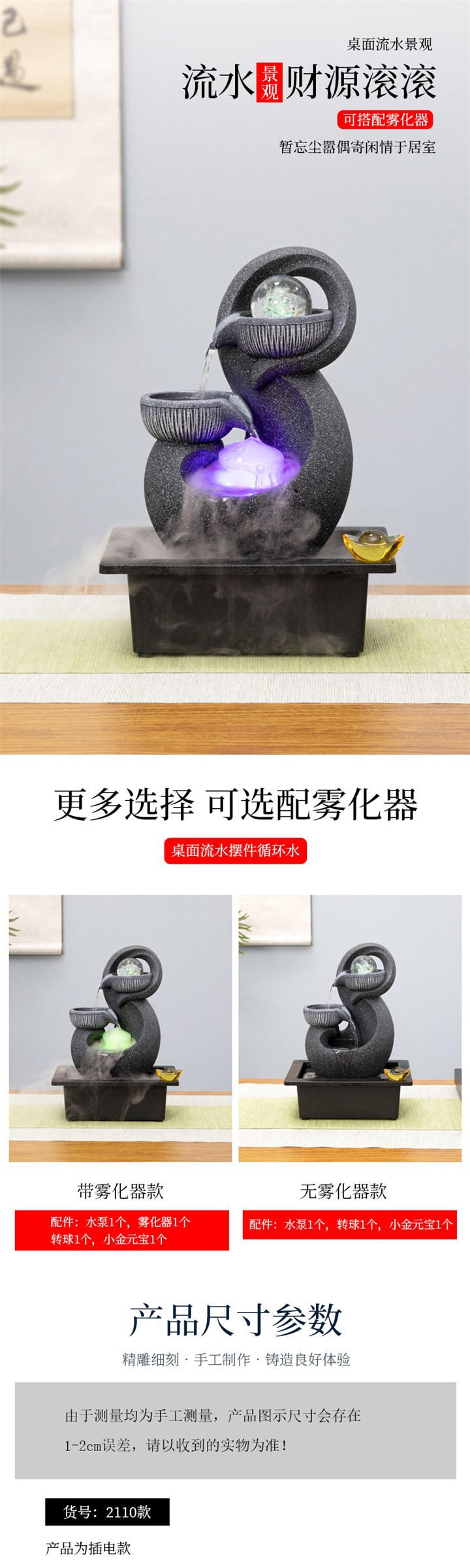 현대적인 흐르는 물 장식품, 순환하는 물, 작은 분수, 피닉스 물 공, O 사무실, 부를 불러일으키는 팔방 풍수스토어 가기