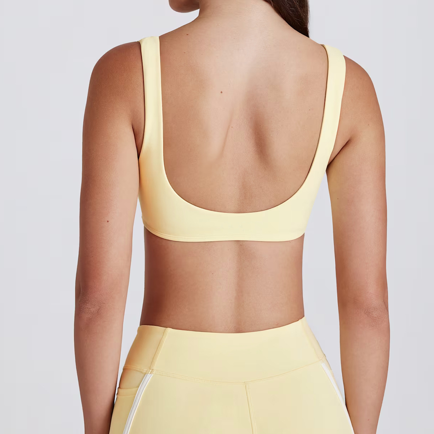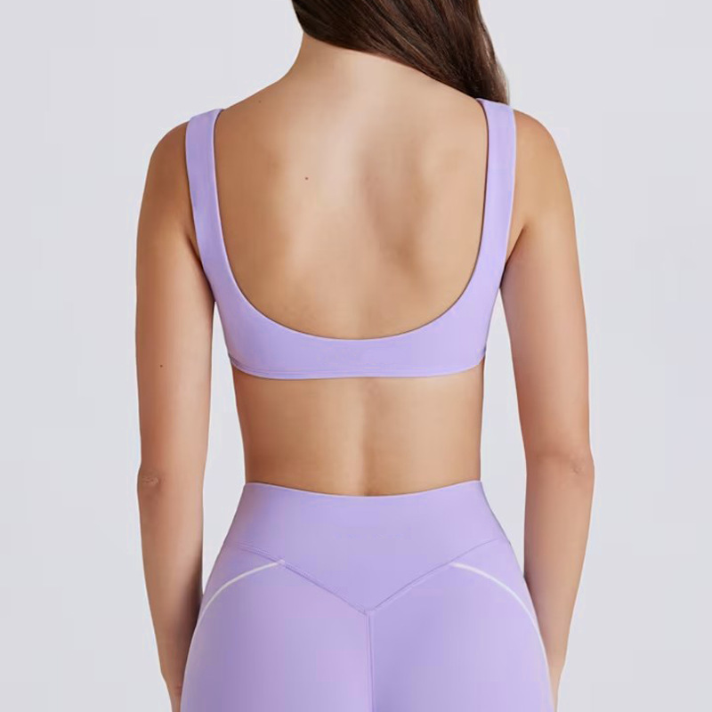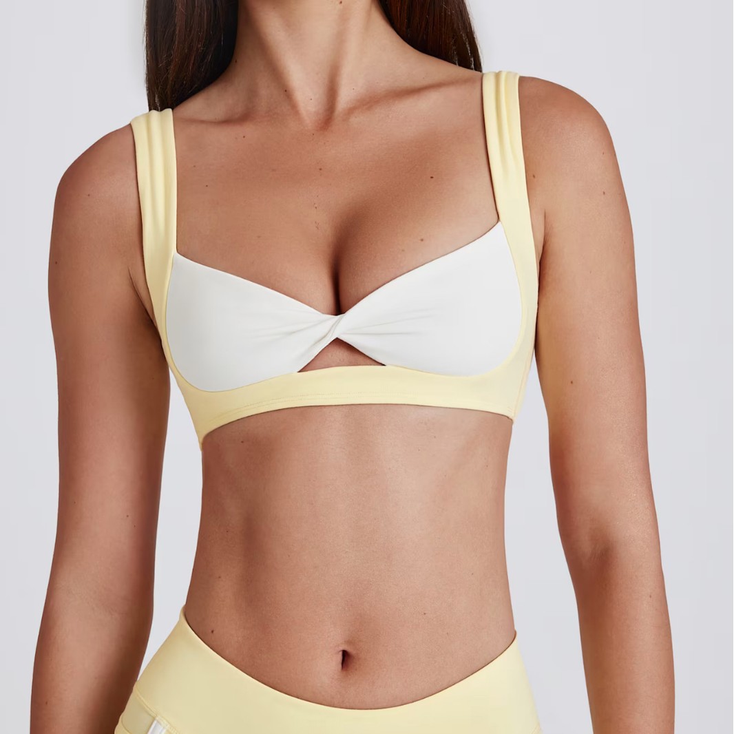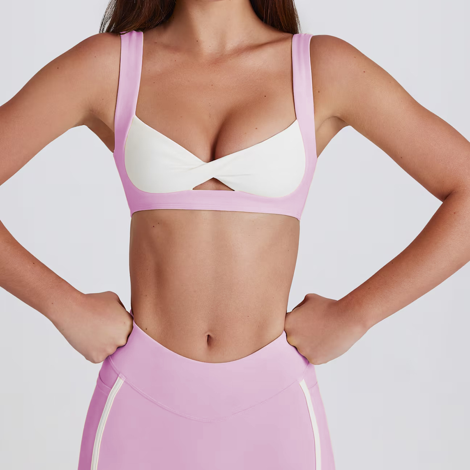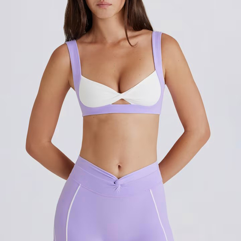 여성을 위한 크로스보더 유럽 및 미국 여름 대비 색상 스포츠 브라, 트위스트 중공 디자인, 속건성 딥 U 요가 백 브라