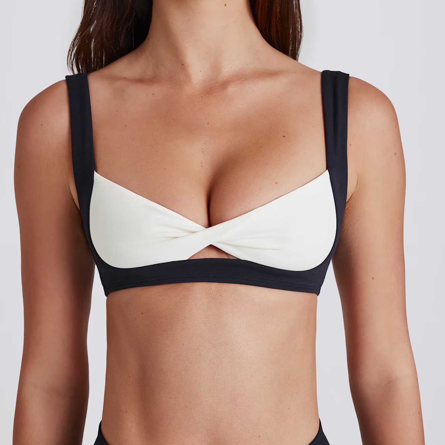 여성을 위한 크로스보더 유럽 및 미국 여름 대비 색상 스포츠 브라, 트위스트 중공 디자인, 속건성 딥 U 요가 백 브라스토어 가기