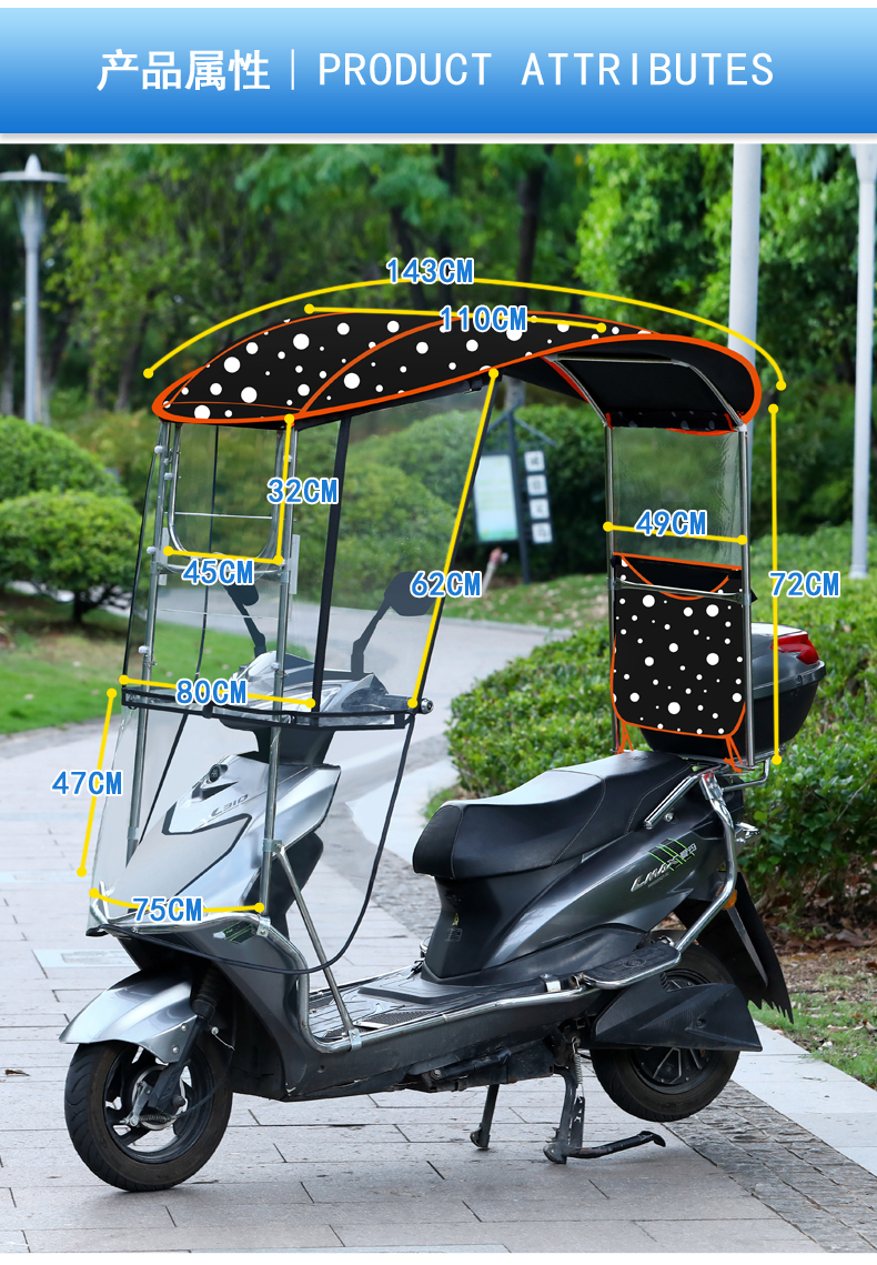 전기차 차양, 신형 오토바이 차양, 스쿠터 앞유리, 자외선 차단 커버, 올 스테인리스 차양