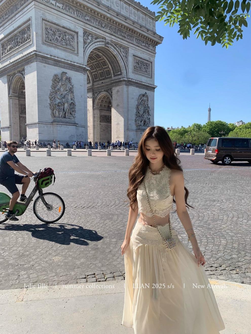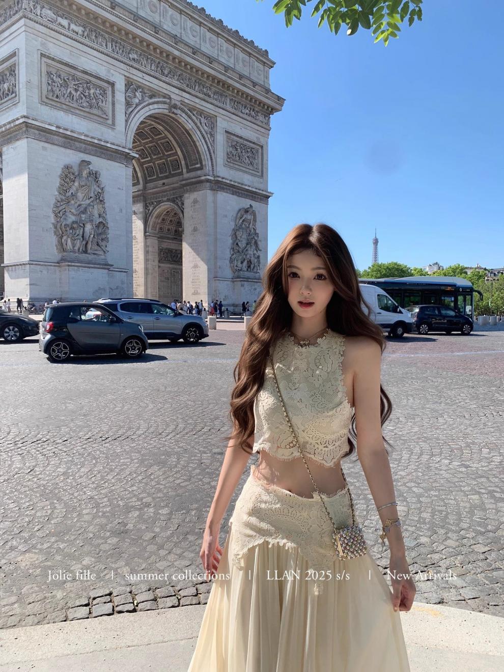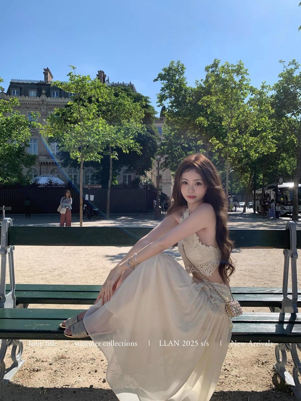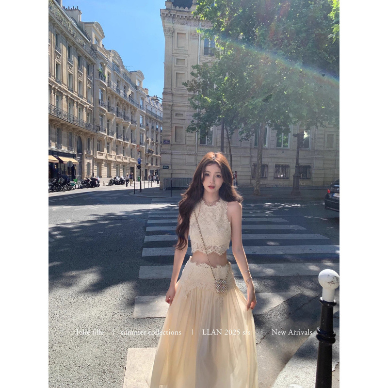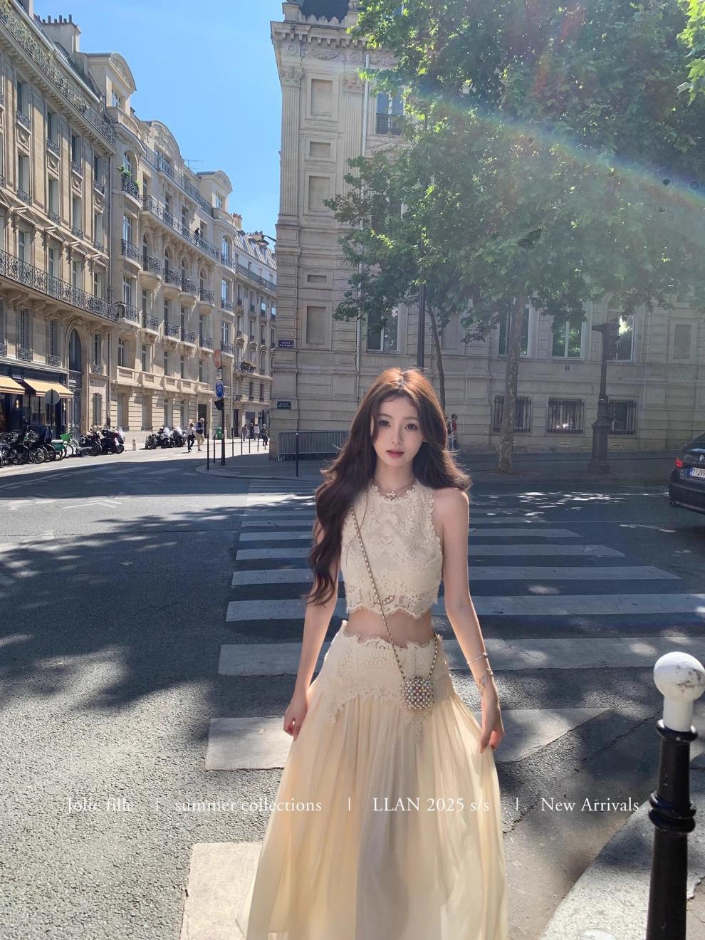 스커트 2025 여름 새로운 섹시한 인기 롱 스커트 정장 여성 우아하고 달콤하고 절묘한 레이스 민소매 탑 여성스토어 가기