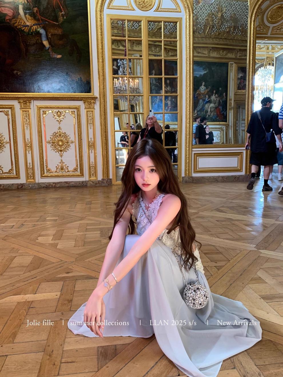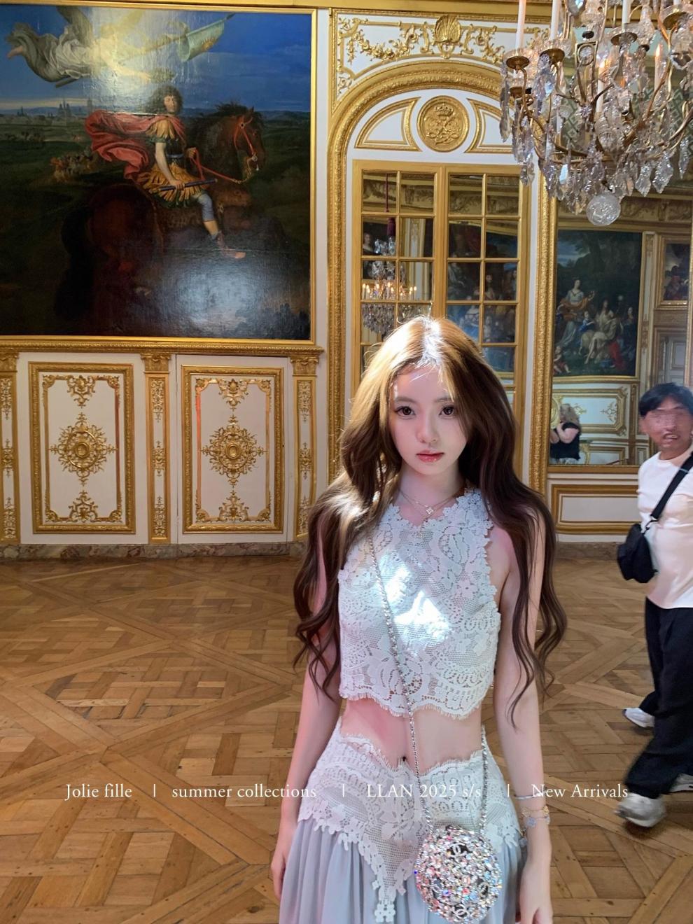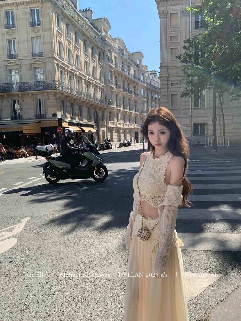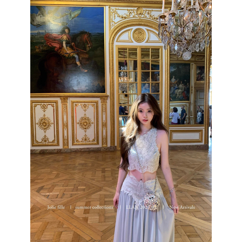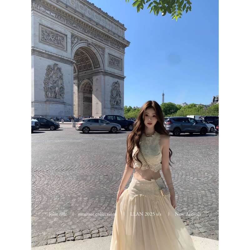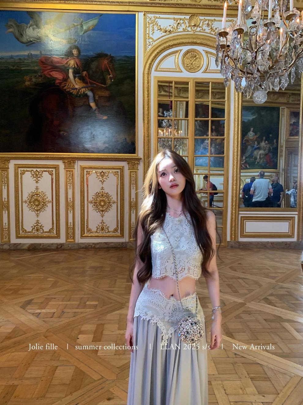 스커트 2025 여름 새로운 섹시한 인기 롱 스커트 정장 여성 우아하고 달콤하고 절묘한 레이스 민소매 탑 여성스토어 가기