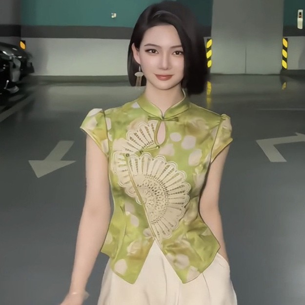 인터넷 연예인 패션 핫 스타일 여성을위한 새로운 중국 스타일 셔츠 2025 여름 새로운 국가 스타일 프린트 버튼 탑 트렌디