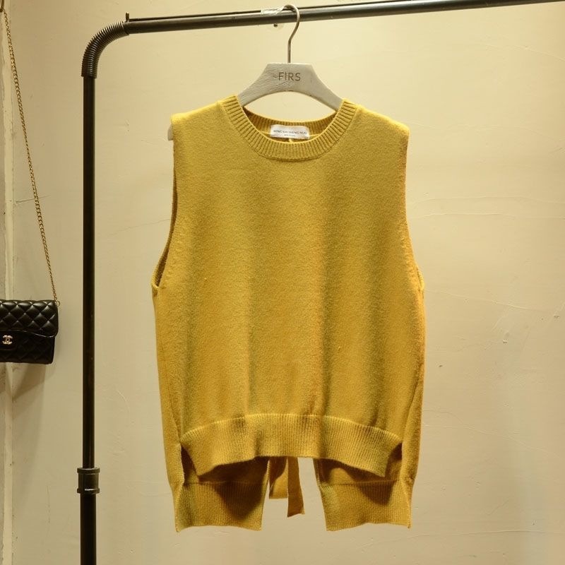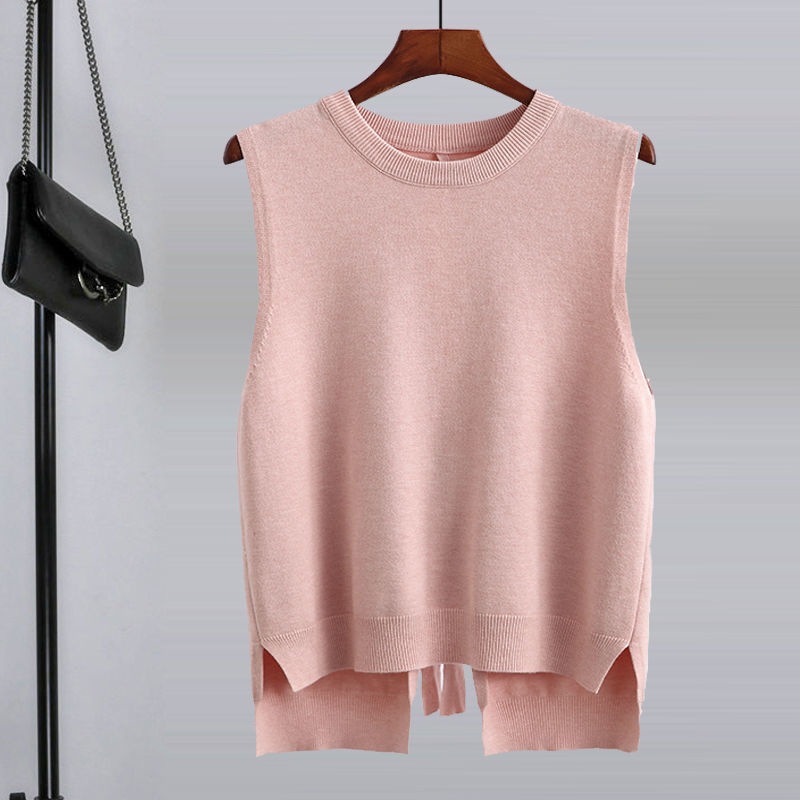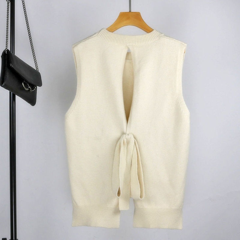 봄과 가을 새로운 단색 스웨터 조끼 탑 여성 한국 스타일 뒷면 레이스 업 세련된 단순 느슨한 다용도 양복 조끼