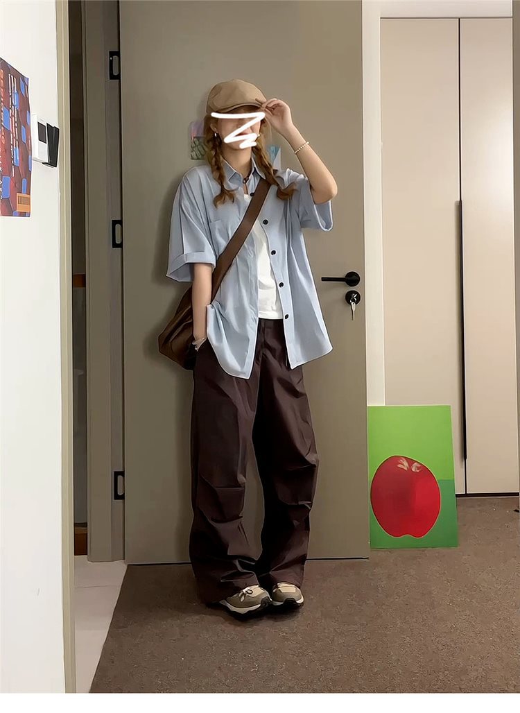 여성을위한 블루 썬 프로텍션 반팔 셔츠 재킷 여름 2025 새로운 스타일 느슨한 셔츠 프랑스 스타일 탑스토어 가기