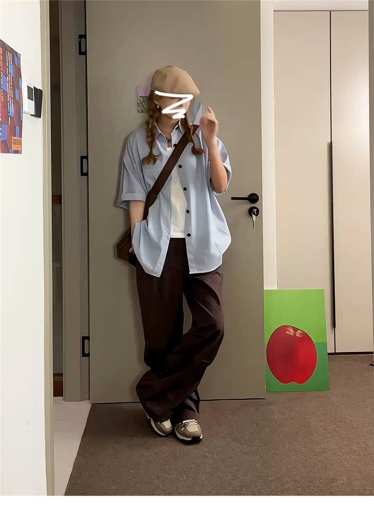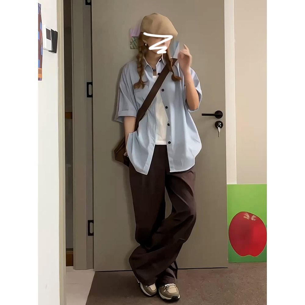 여성을위한 블루 썬 프로텍션 반팔 셔츠 재킷 여름 2025 새로운 스타일 느슨한 셔츠 프랑스 스타일 탑