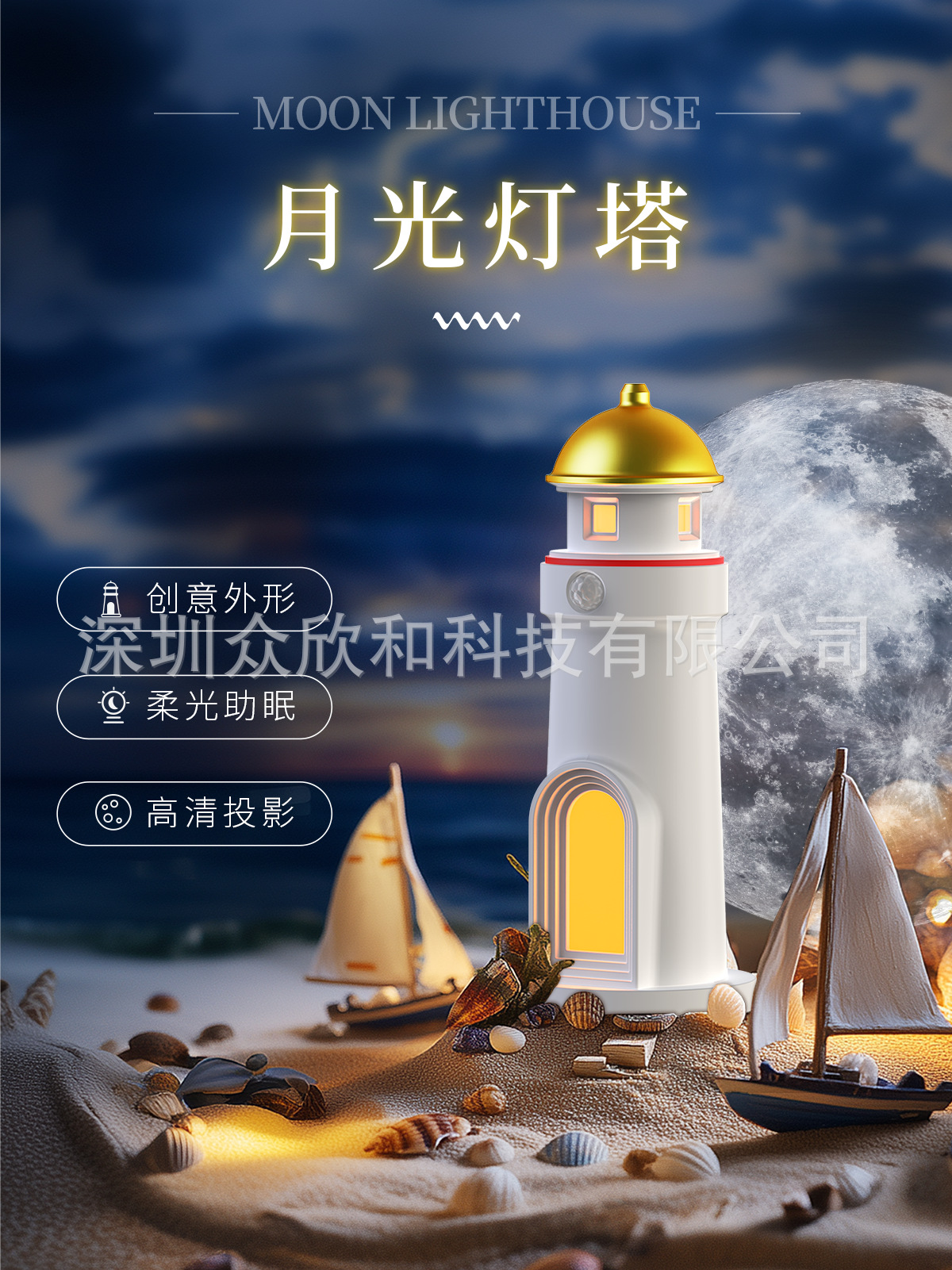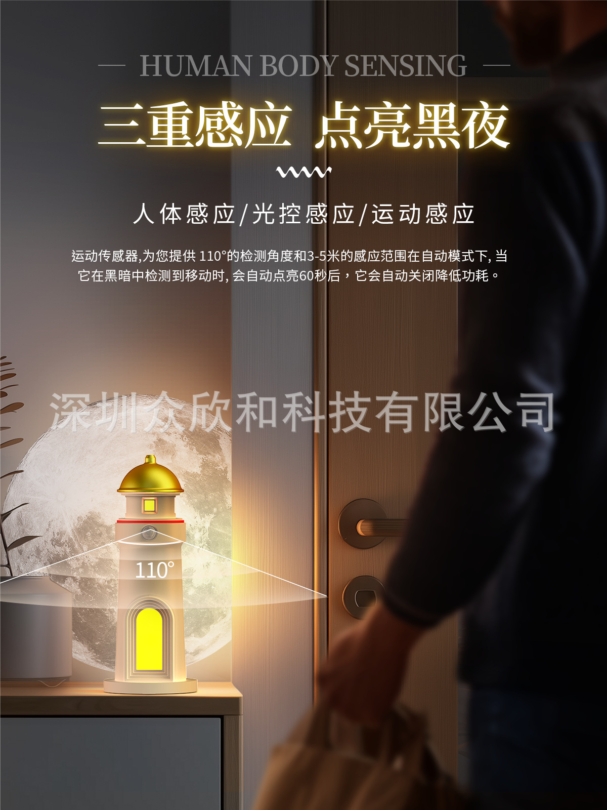 국경 간 달빛 등대 프로젝션 램프 분위기 야간 조명 휴일 선물 장식품 인체 유도 분위기 램프 스마트 테이블 램프스토어 가기
