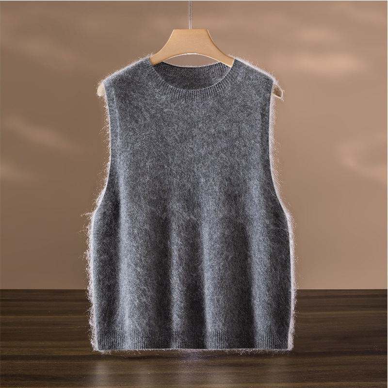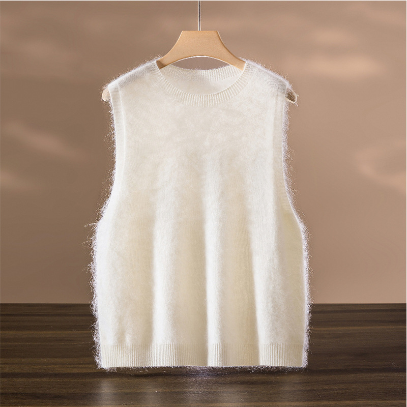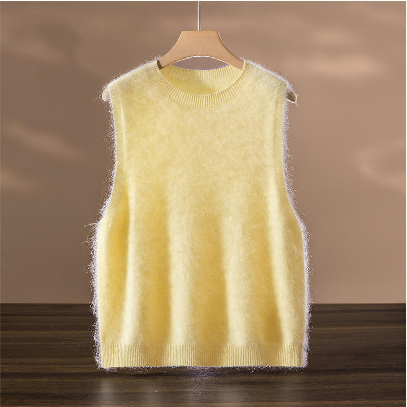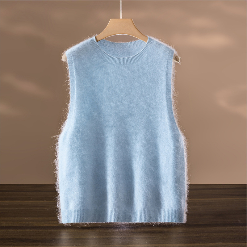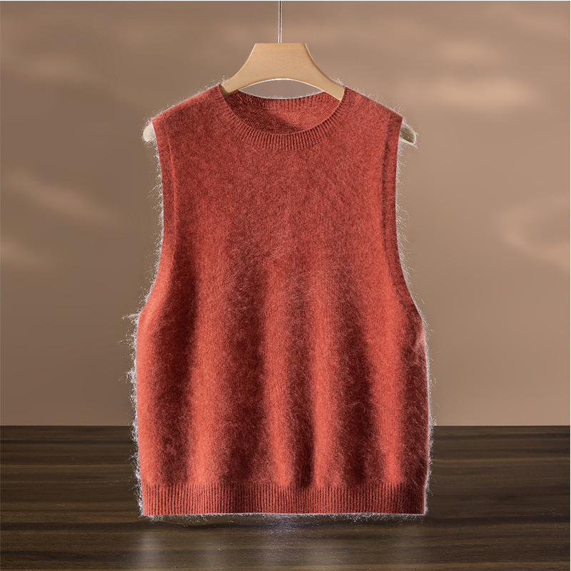 [마카롱 컬러] 캐시미어 울 기모 라운드 넥 민소매 풀오버 조끼 여성 초가을 새 코트 스웨터