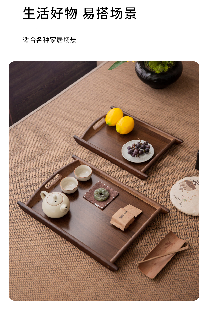 새로운 중국 스타일 트레이 대나무 나무 직사각형 가정용 찻잔 트레이 저녁 식사 트레이 보관 호두 과일 분위기