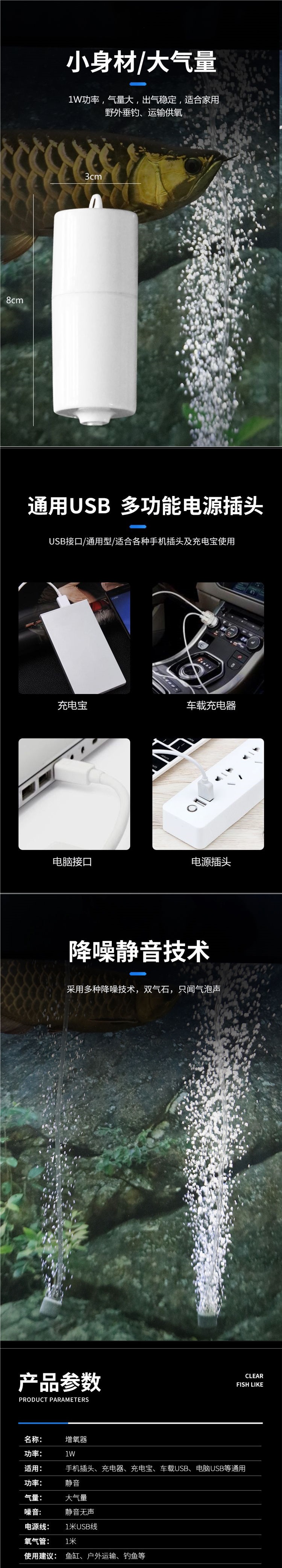• 작은 공기량은 가정용 소형 어항에 적합합니다.