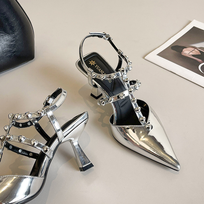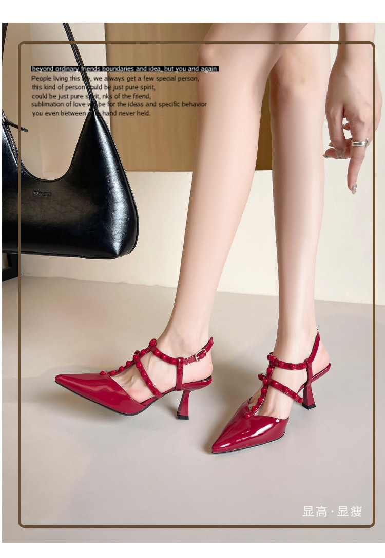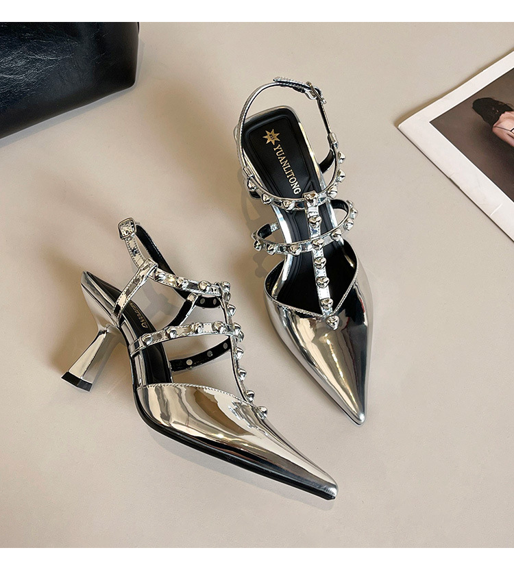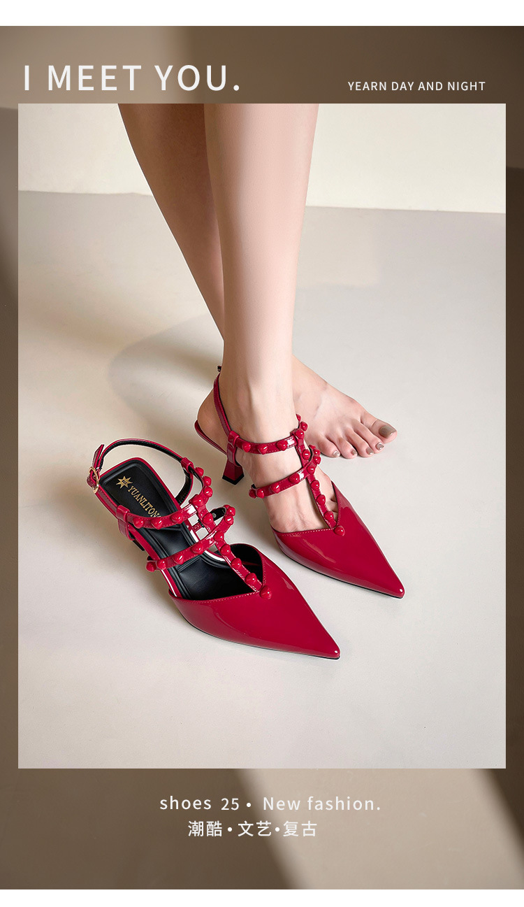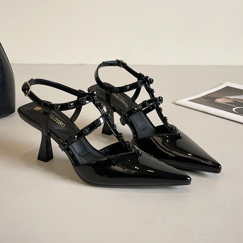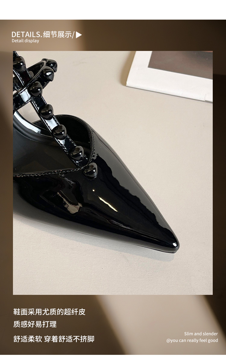Grape Ma Xia의 새로운 스타일 리벳 여성용 신발, 고급스럽고 우아한 하이힐, 발이 피곤하지 않은 가죽 여성 신발스토어 가기
