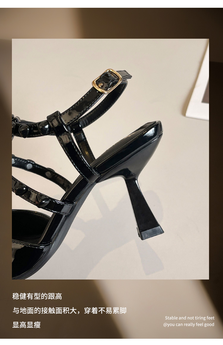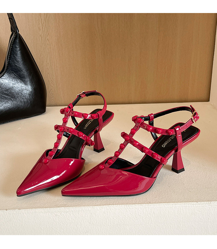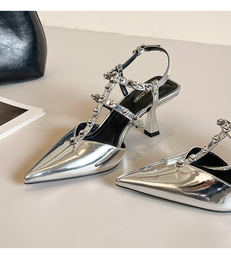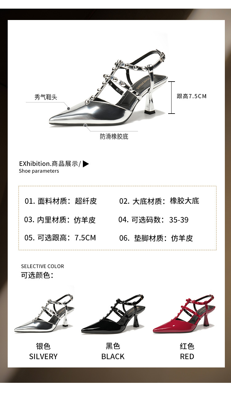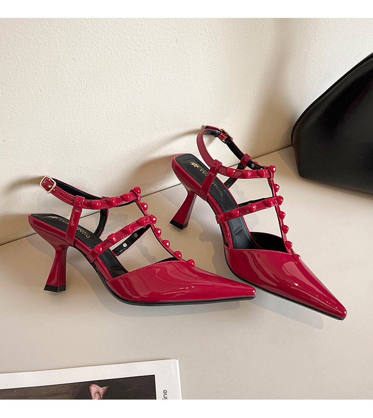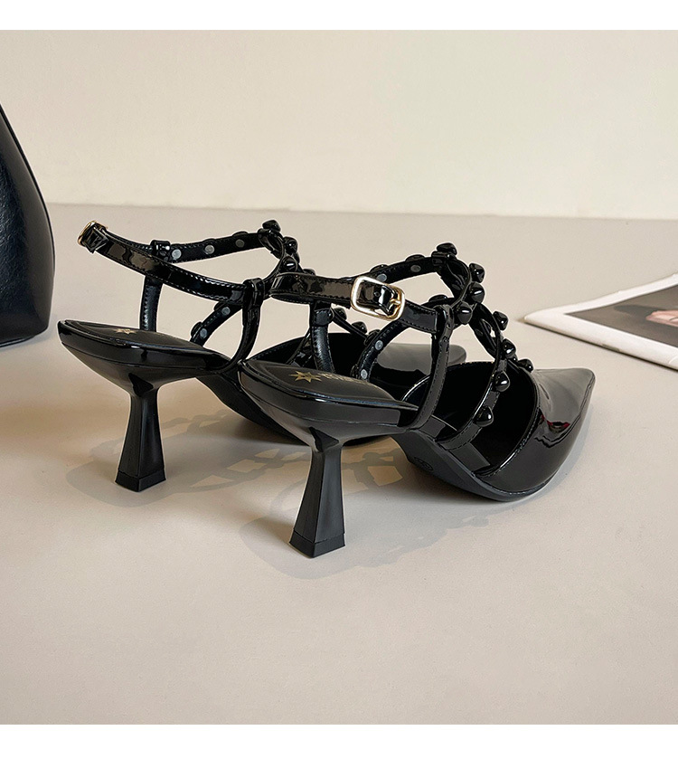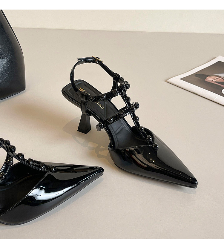 Grape Ma Xia의 새로운 스타일 리벳 여성용 신발, 고급스럽고 우아한 하이힐, 발이 피곤하지 않은 가죽 여성 신발스토어 가기
