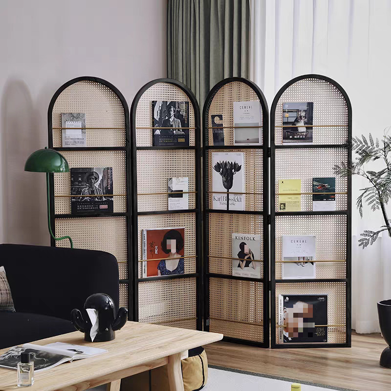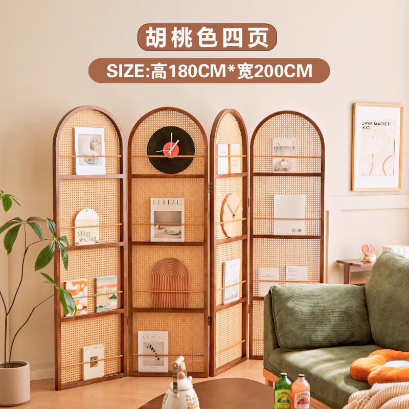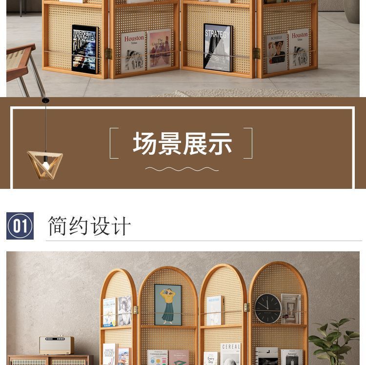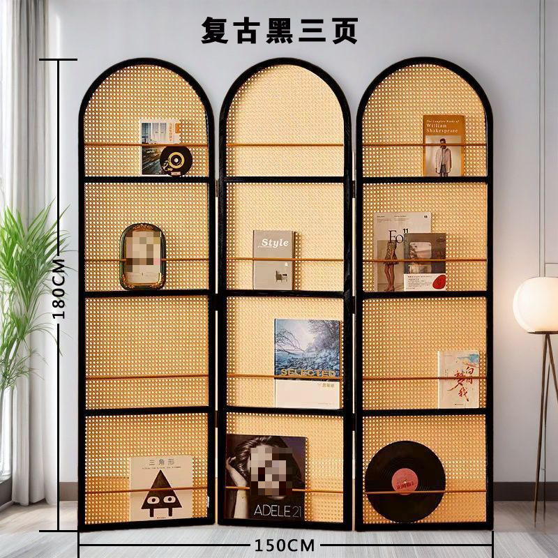 중국 복고풍 단단한 나무 등나무 스크린 거실 정문 침실 입구 파티션 현관 차단 접이식 잡지 랙