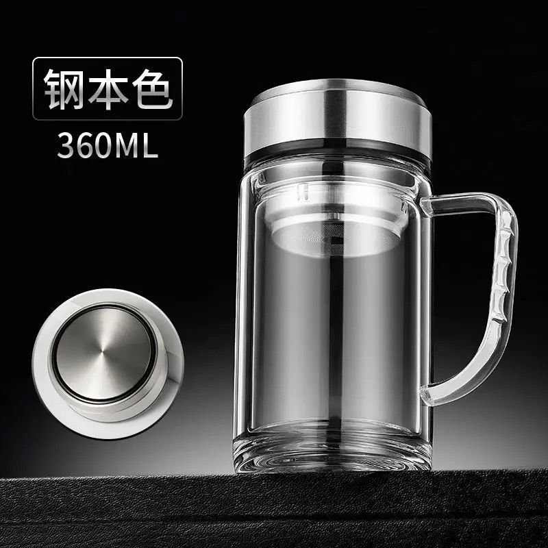 남성용 단열 컵 손잡이 이중층 유리 물컵 대용량 차 컵 휴대용 차 물 분리스토어 가기