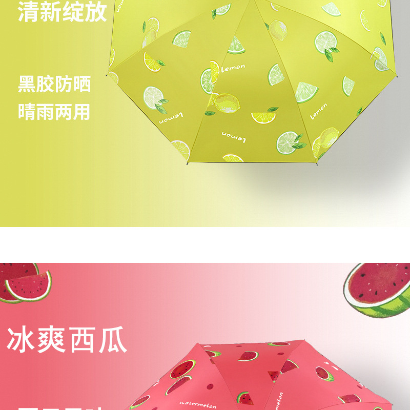 여름 작은 신선한 과일 우산 크리 에이 티브 70% off 접이식 태양 우산 파라솔 학생을위한 수동 비 또는 샤인 비닐 우산