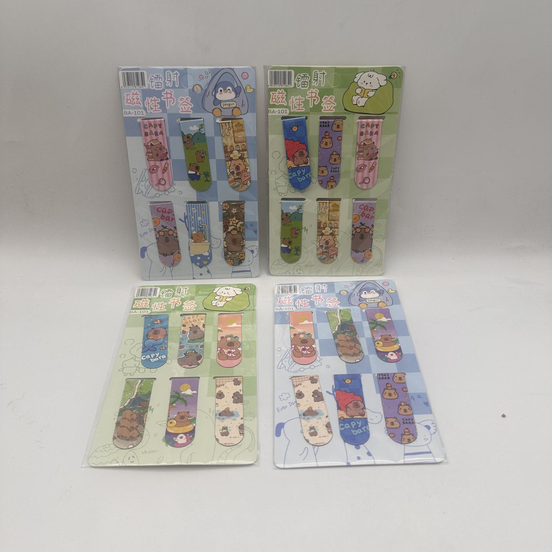 새로운 Kapibala 6-in-1 자기 책갈피, 창의적이고 귀여운 Kapibala 학생, 절묘한 레이저 책갈피, 내구성 및 클립 가능스토어 가기