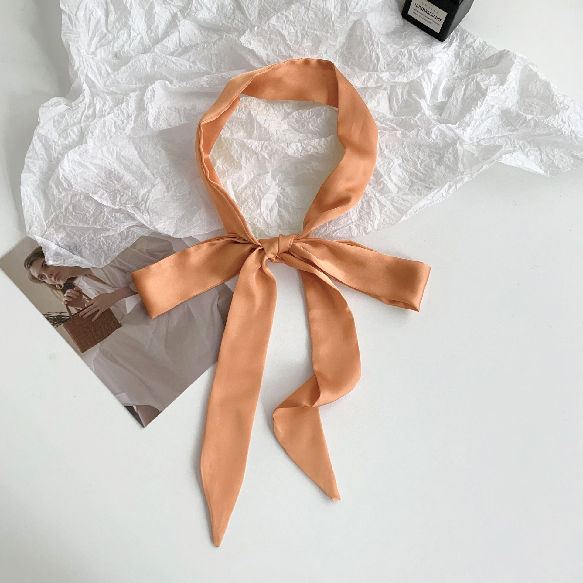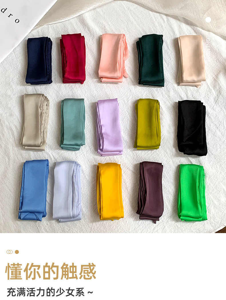 긴 실크 스카프, 고급스러운 새로운 스타일, 캔디 컬러, 단색, 얇고 좁은 다용도 스카프, 장식용 머리띠, 리본, 가방 묶음 리본스토어 가기